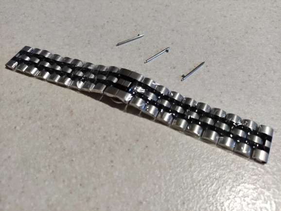отличный браслет. Смотрите на стрелочки внутри, чтобы знать, куда выталкивать крепление при настройке. а то сломается. все с запасом. когда настраиваете наденьте часы на руку, сложите излишек и снимите на 1 звено меньше получившегося. у меня вышло 4. снял 3 - казалось свободно. 5-еле застегнул. 4 - больно задирать кисть. вернулся к 3м снятым. ношу неделю, не слетел. доволен