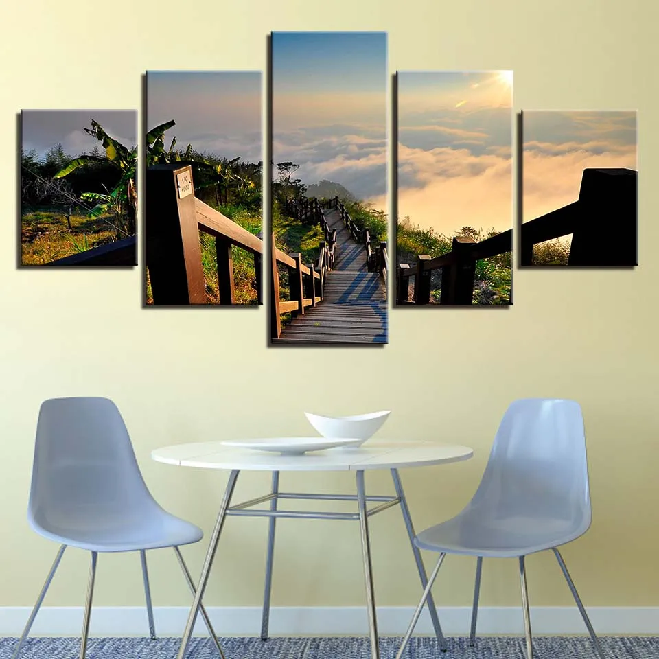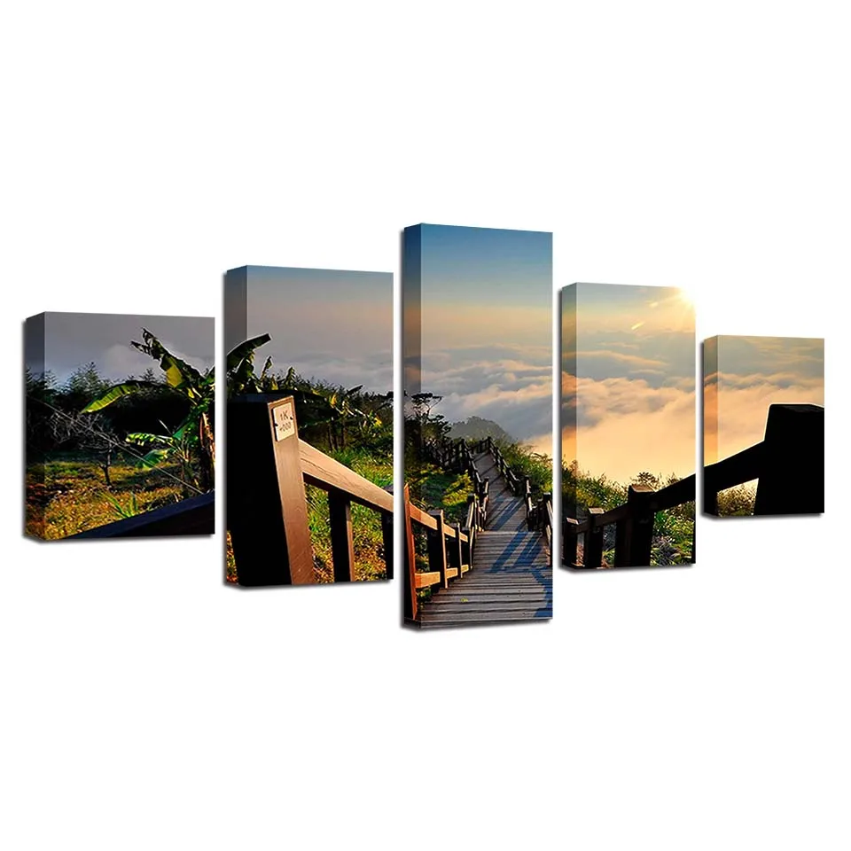 Модульная Картина на холсте, с изображением моста, дерева, восхода солнца, для спальни, 5 шт.