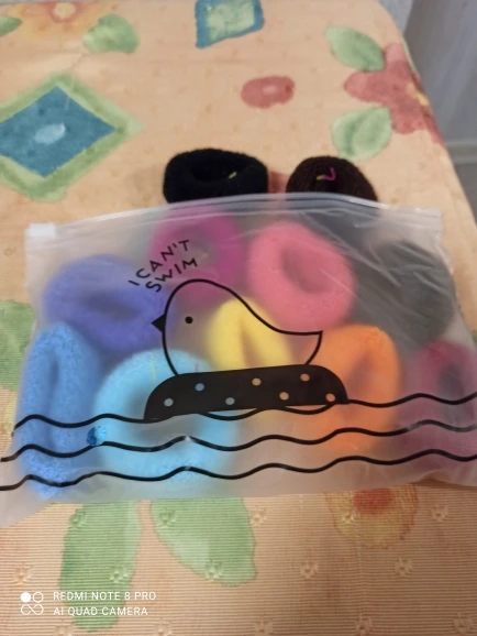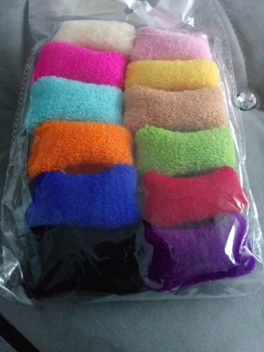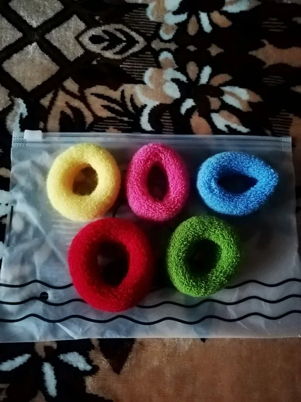 Резинки хороши. Цвета отличные. Но после первого использования они растянулись и стали в два раза больше по диаметру, надо их накручивать на волосы большее количество раз. В итоге они смотрятся туго, не то чтобы так бахрамисто. Но из-за цвета они все же ярки и заметны.