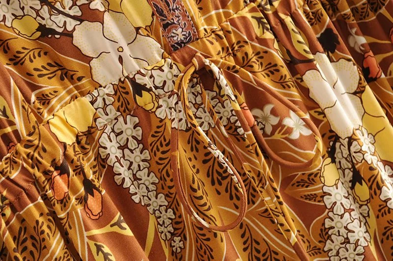Винтажное шикарное женское платье в стиле хиппи с цветочным принтом...