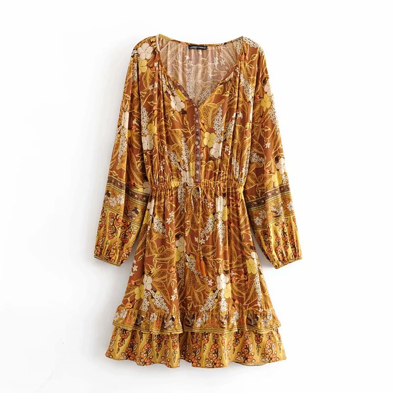 Винтажное шикарное модное женское платье в стиле хиппи с цветочным ...