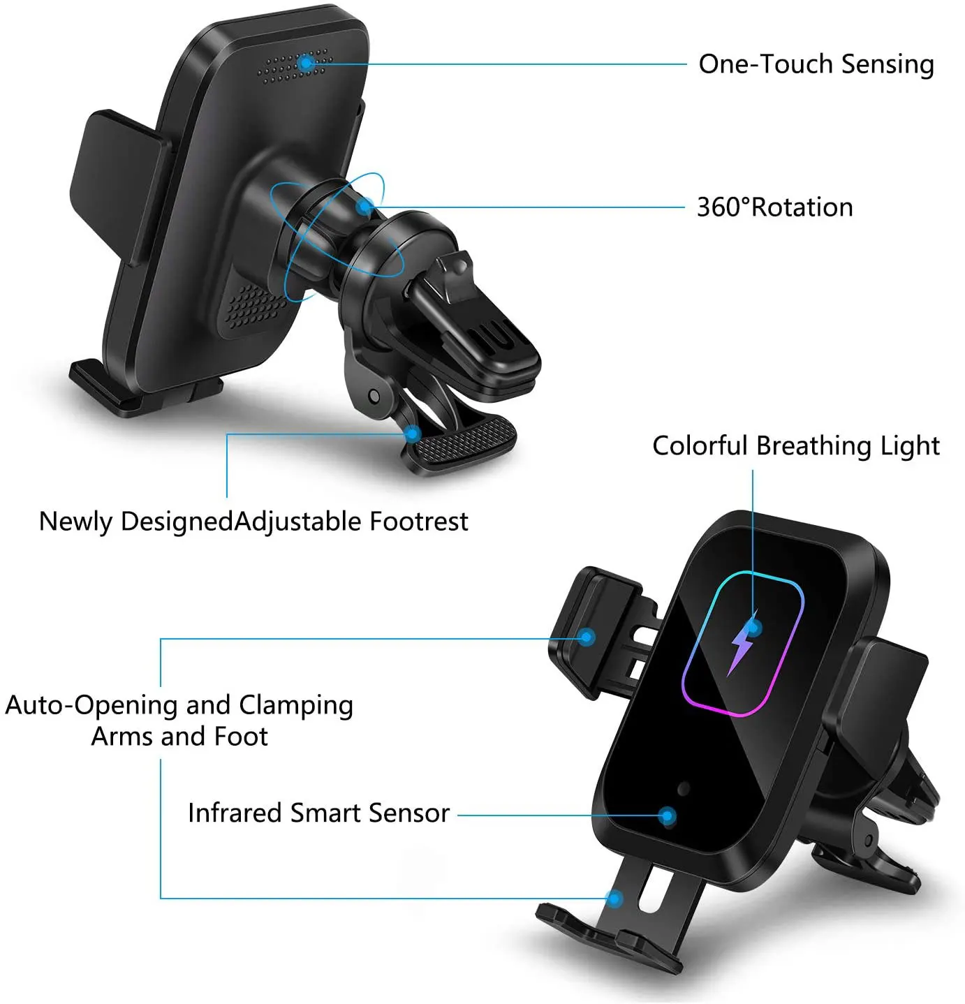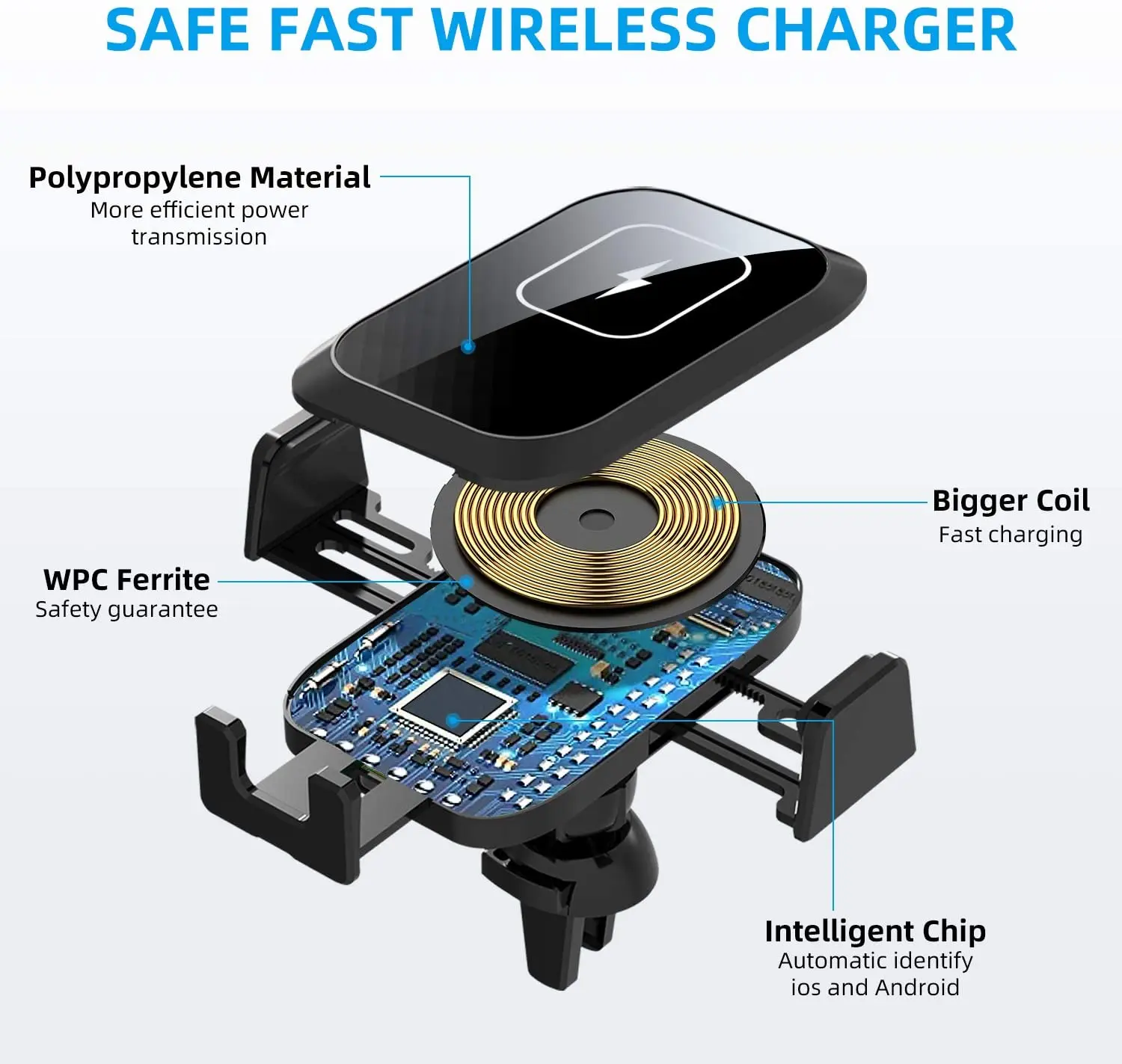 2-in-1 designIt's not only a qi wireless car charger but a phone holder