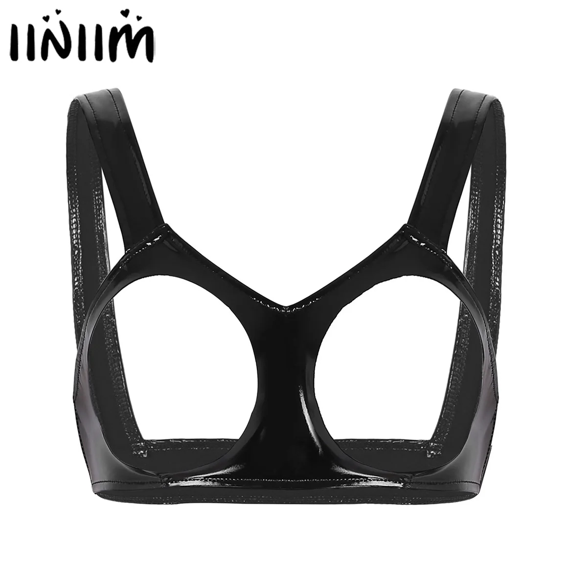 Бюстгальтер женский без подкладки, латексный, мокрый вид, открытые чашечки