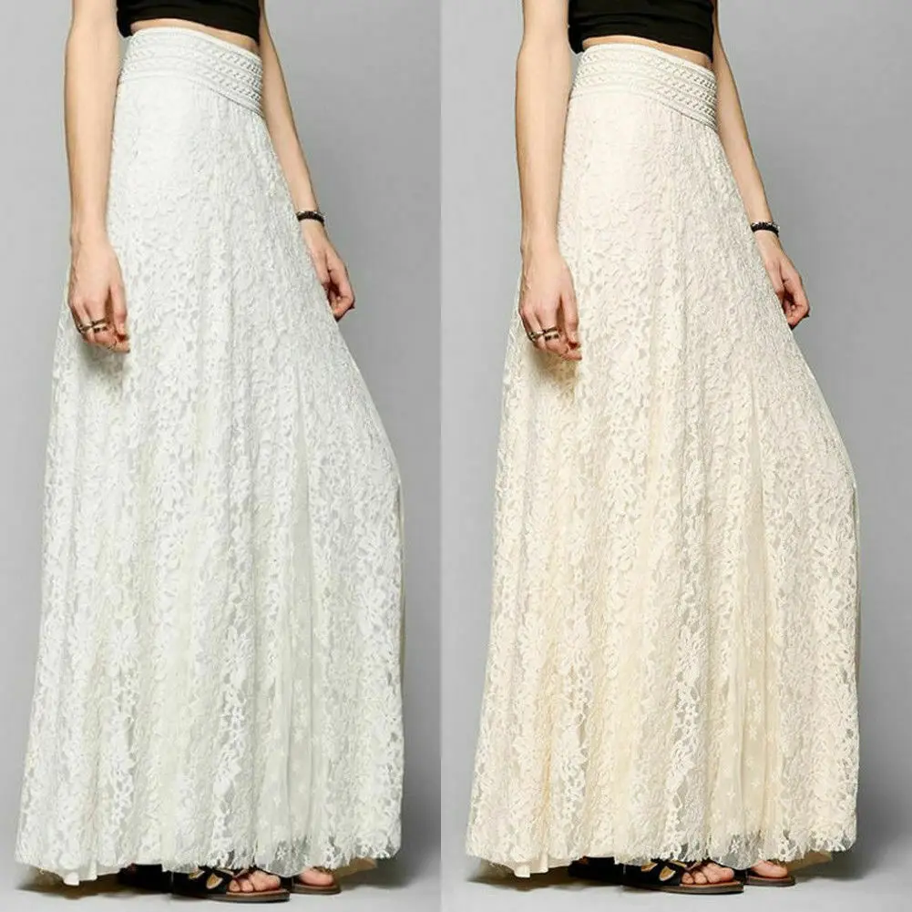 Женская кружевная Двухслойная юбка макси, модная фатиновая Повседневная однотонная эластичная пляжная длинная юбка с завышенной талией, осень 2019