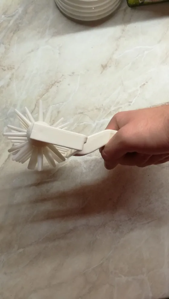 Algunas púas rotas. La bolsa de plástico muy sucia y envejecida, no adecuado para un producto de cocina.