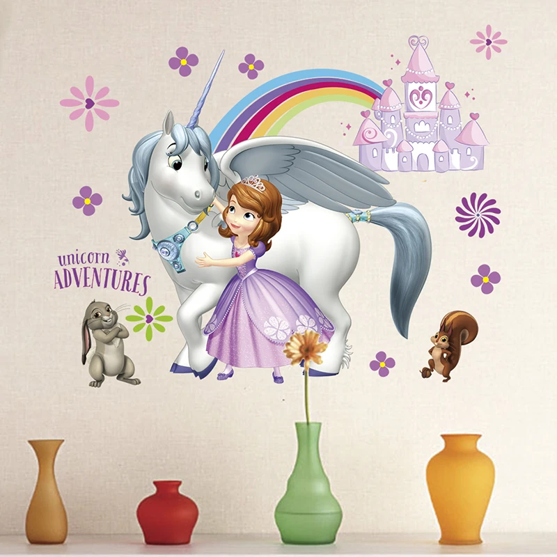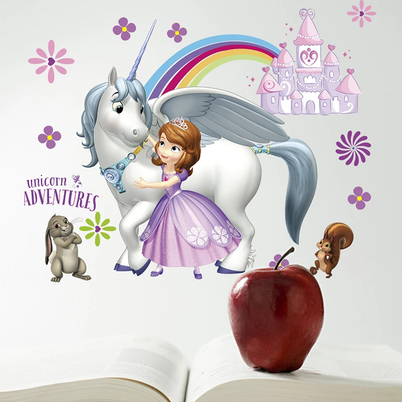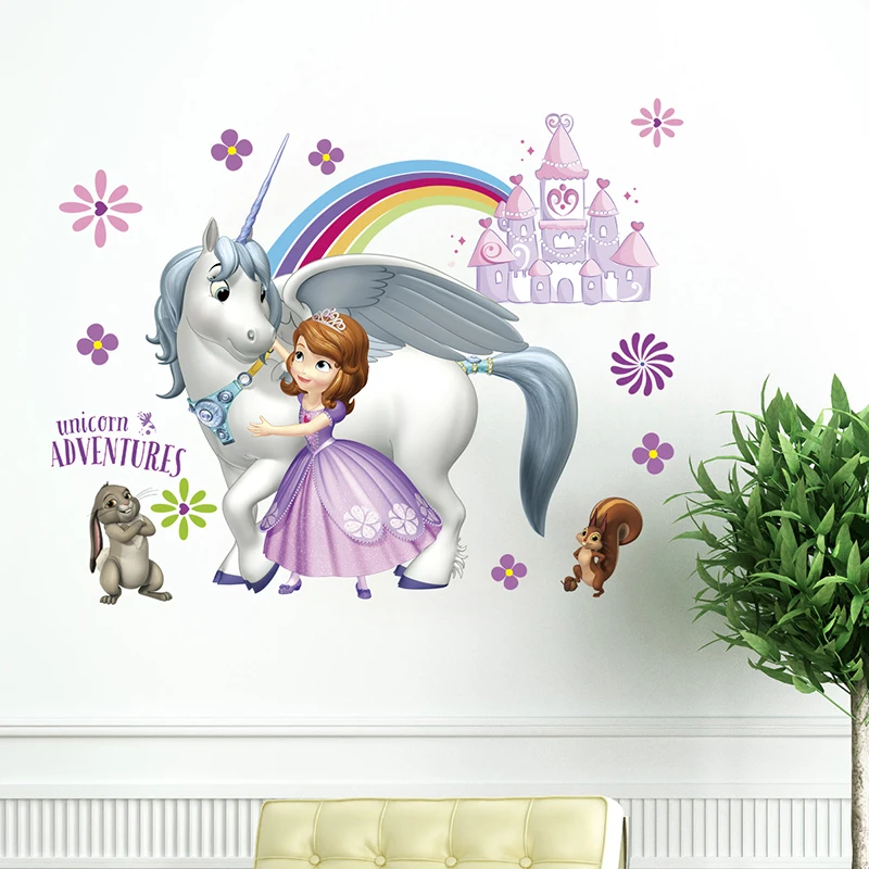 Disney мультяшная Принцесса София Единорог Приключения ПВХ наклейки на стену для домашнего декора детские комнаты для девочек спальни росписи художественное украшение