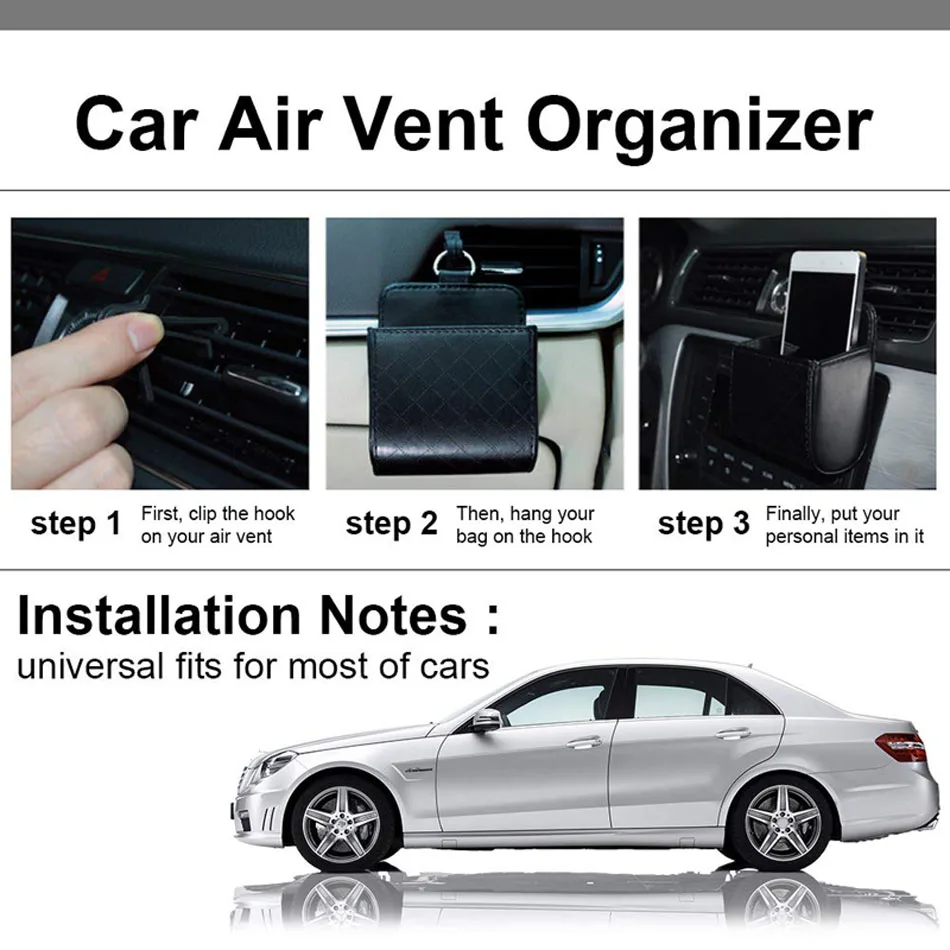 Универсальный автомобильный органайзер для вентиляционного отверстия, сумка для хранения с крючком для автоматического крепления, карманный контейнер из искусственной кожи аксессуар для телефона, держатель