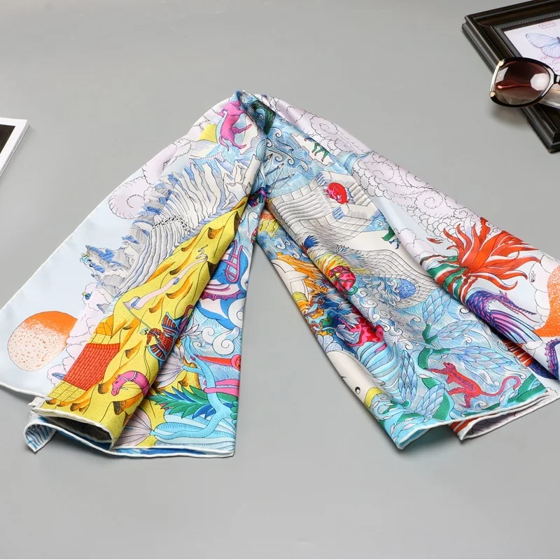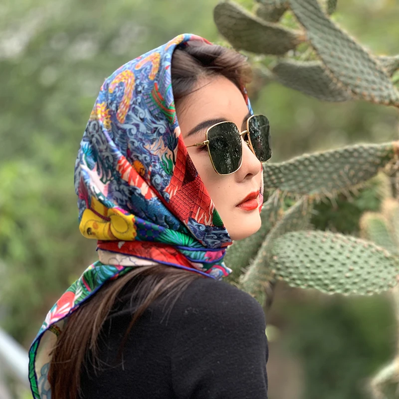 Модные принты 100% шелковый шарф шаль платок хиджаб для женщин