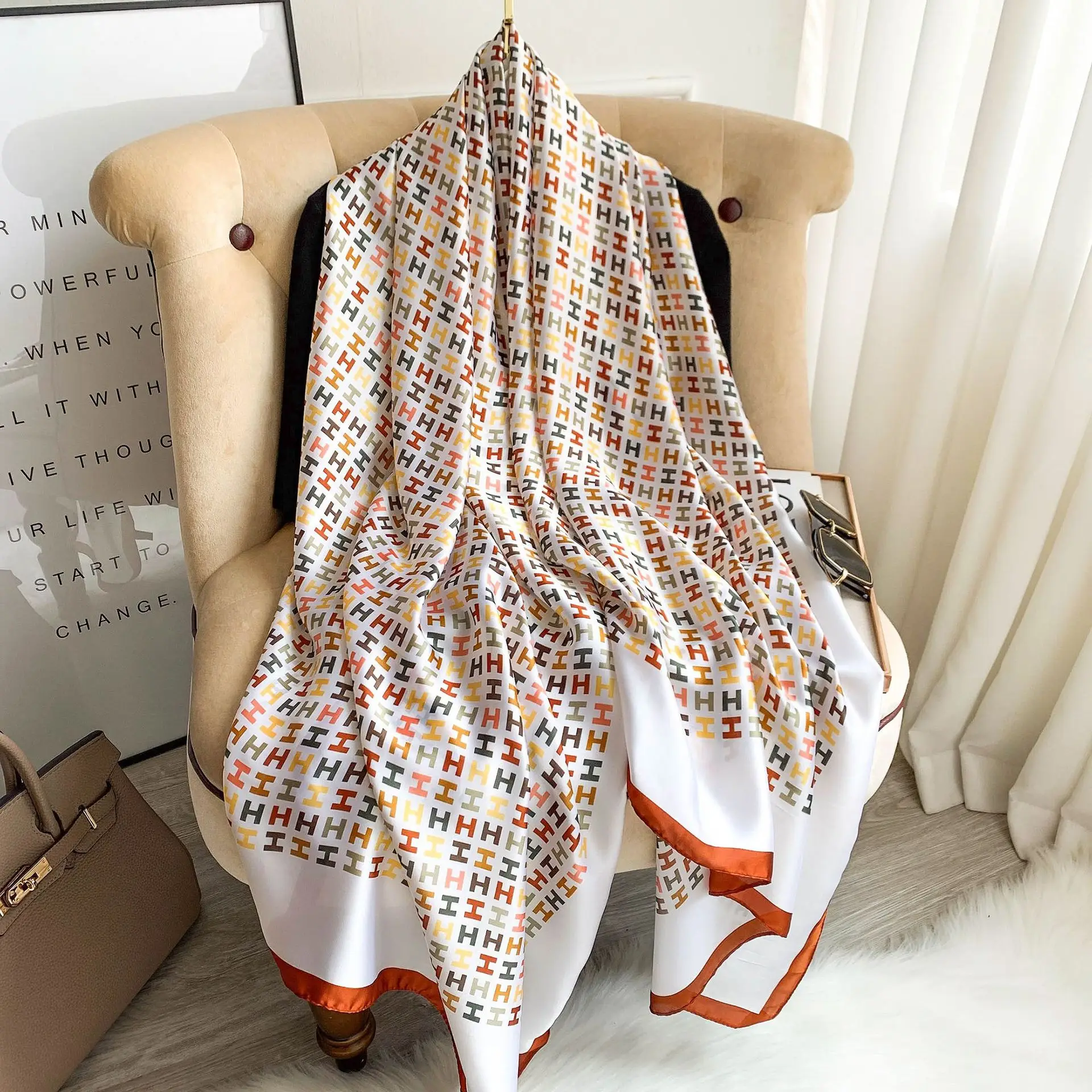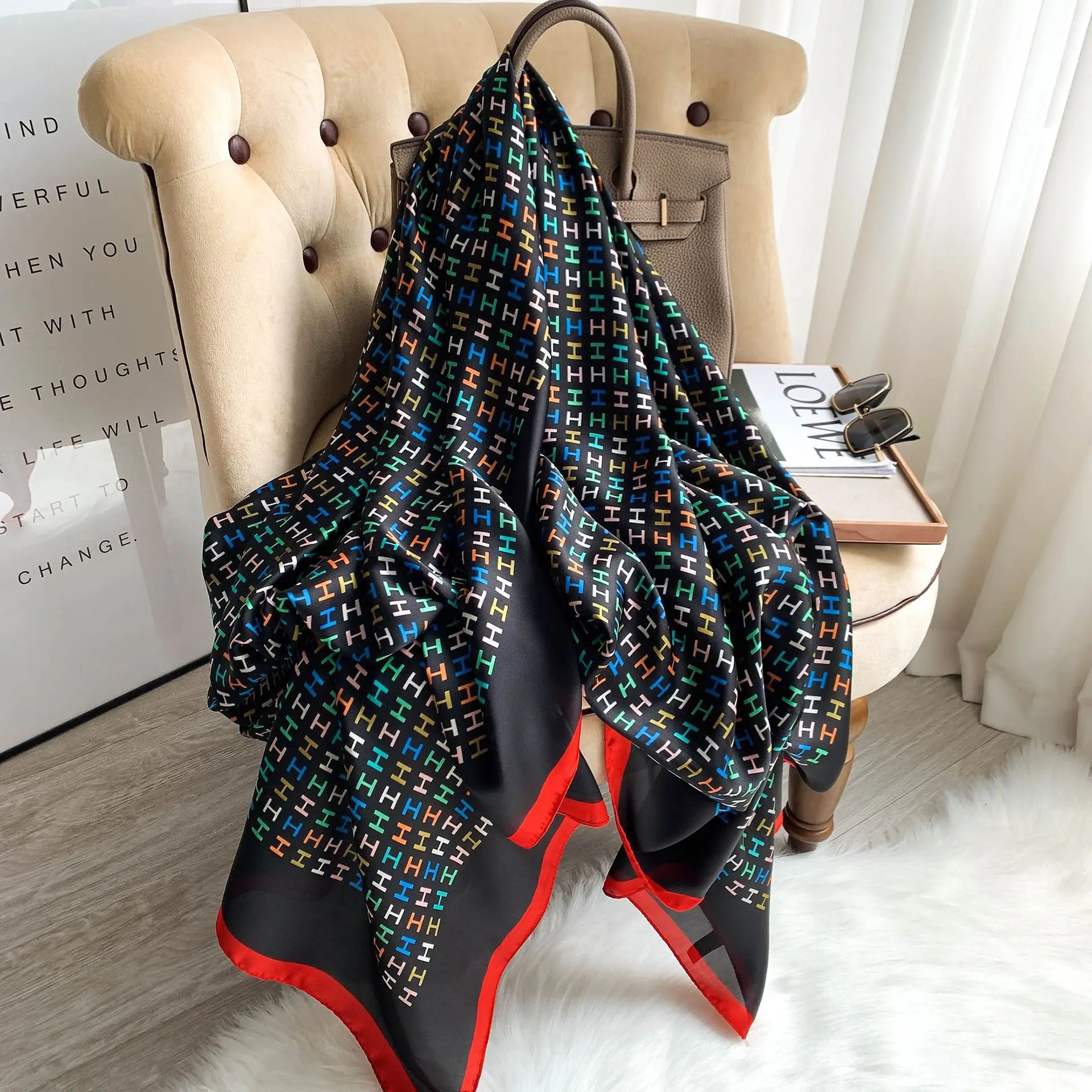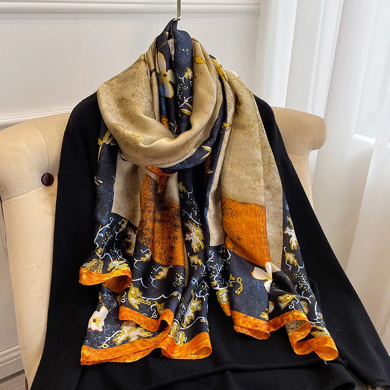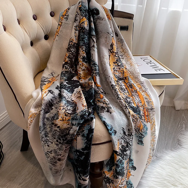 2022 роскошный бренд x 90 см шелковые шарфы женская Солнцезащитная пляжная шаль с принтом женский популярный Шелковый головной платок модный новый шарф с принтом