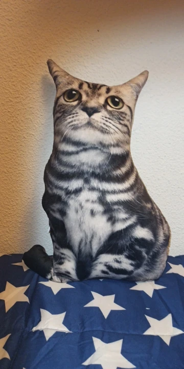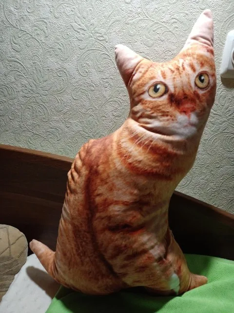 отличная киса, смотрится как живая)), заказываю уже третью подушку, а продавец очень радует быстрой доставкой