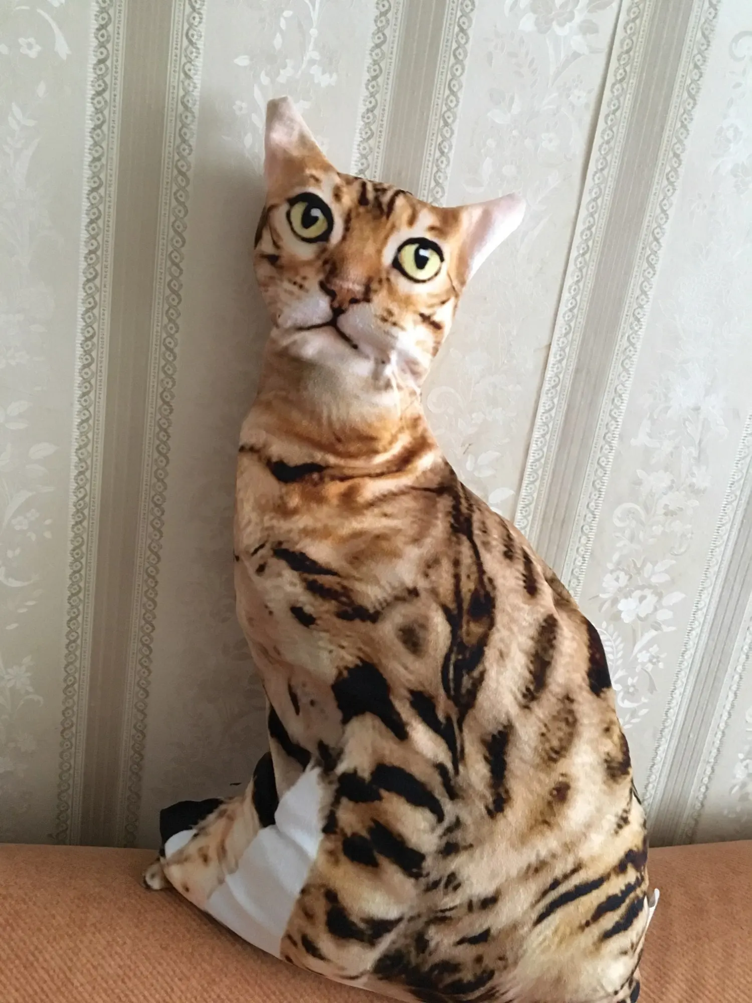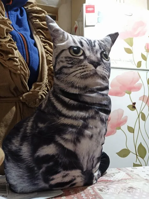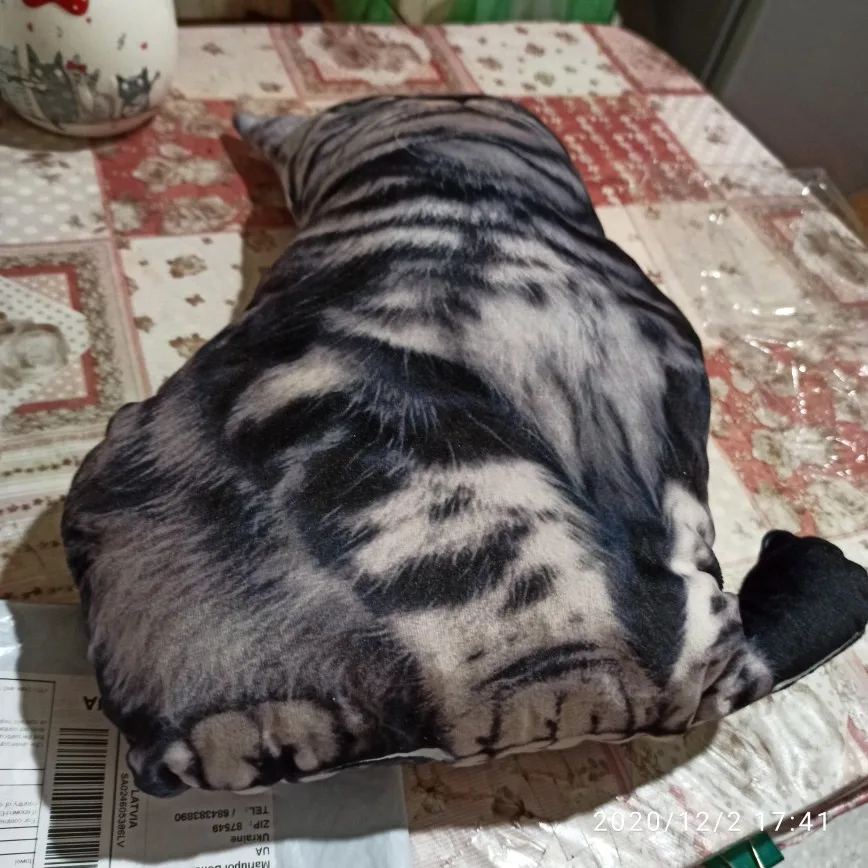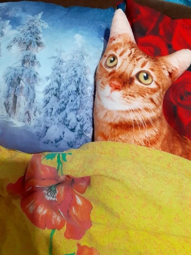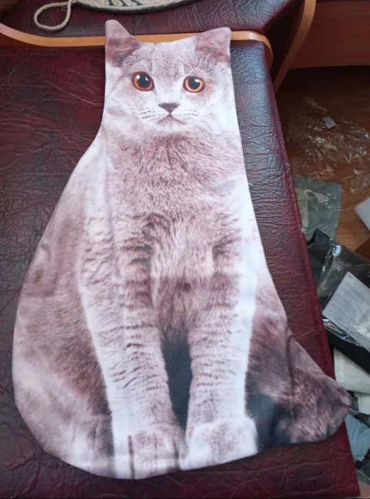 Прикольная подушка! Синтепух у меня был, так что набила её сама. Нам понравилась! Наш кот воспринял её как чужого кота, который вторгся на его территорию. Атакует её. Весь вечер веселились. Доставка из Китая до таможни в Москве - 8 дней, это реально быстро, но почта России, работает как всегда медленно. Хороший магазин. Буду рекомендовать. Спасибо.