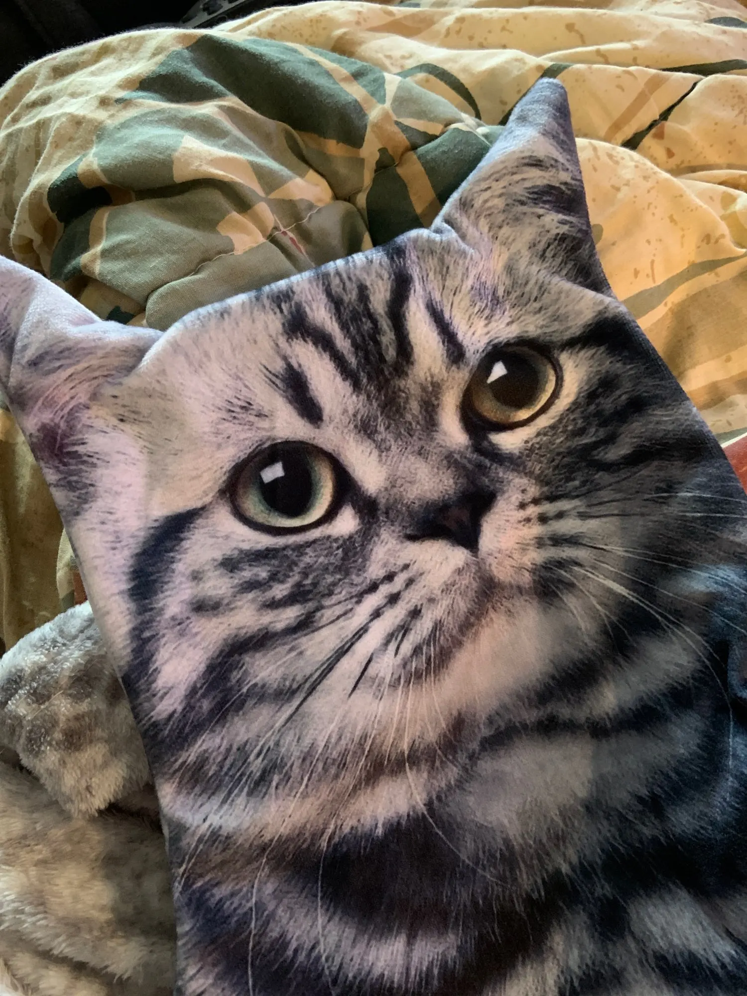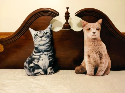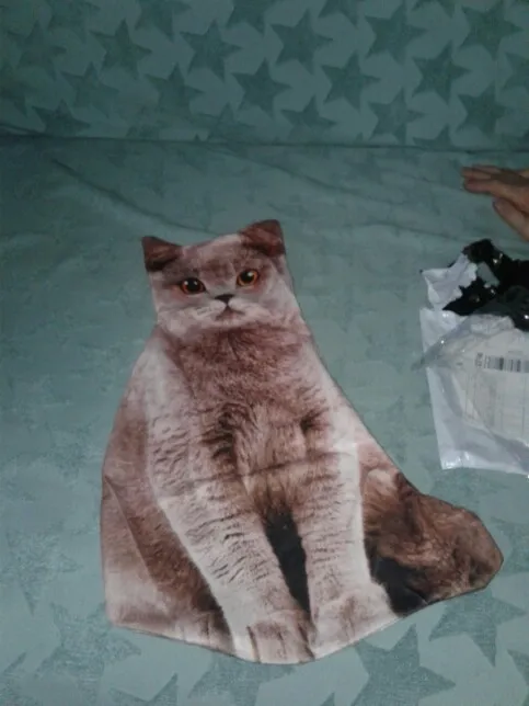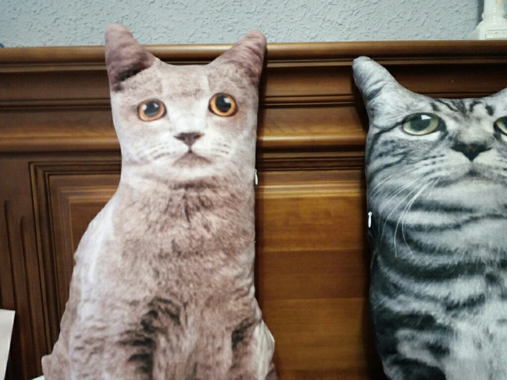 качество принта хорошее, шов на вид хороший, единственное я не ещё не набил ватой. У меня уже есть собака, мне очень нравится, думаю кошки должны выглядеть также .
