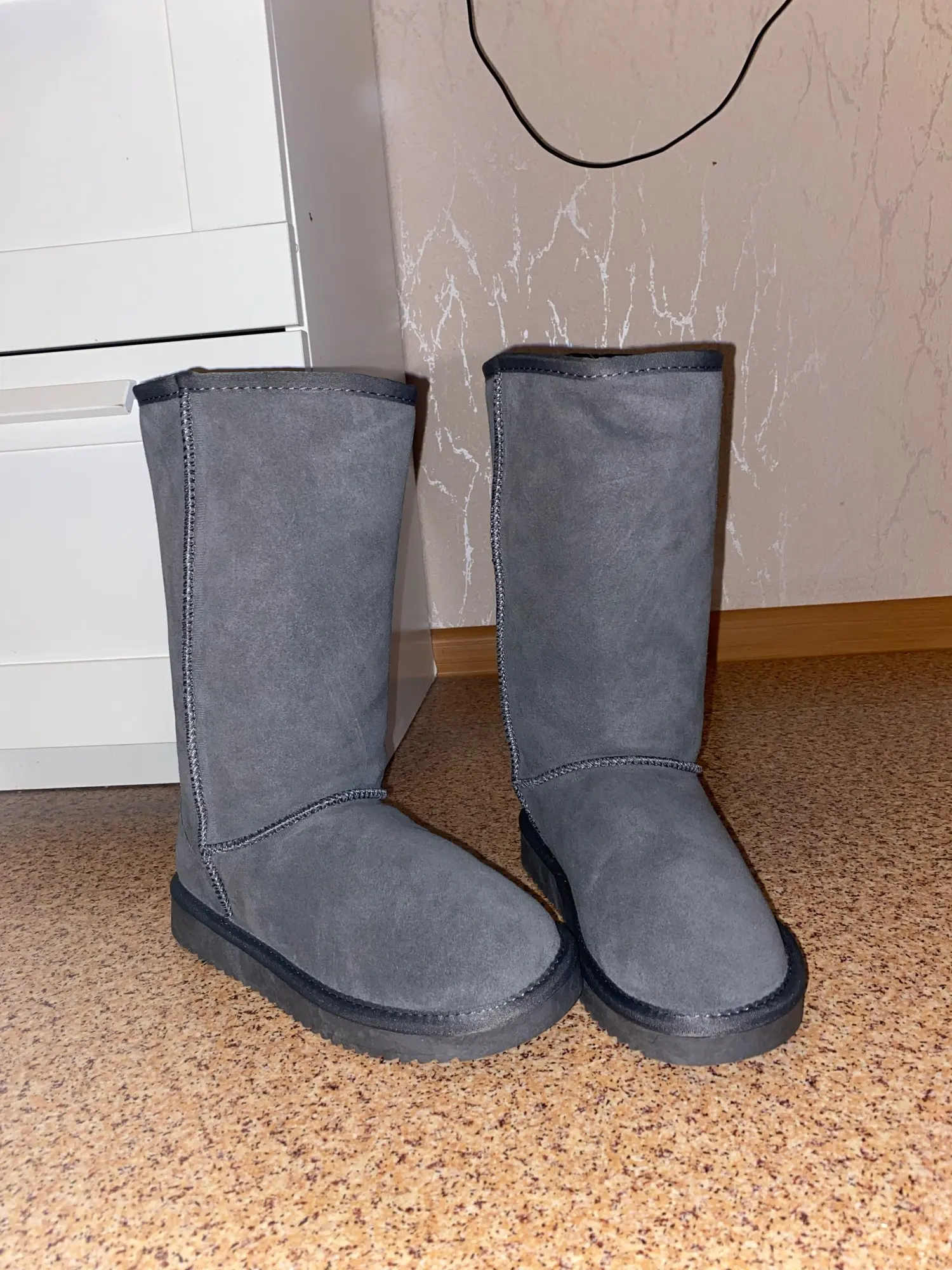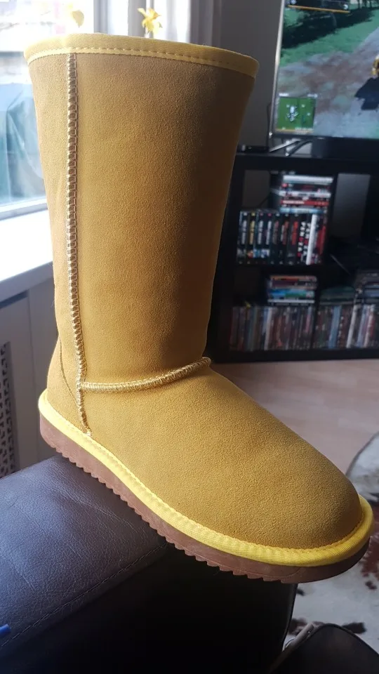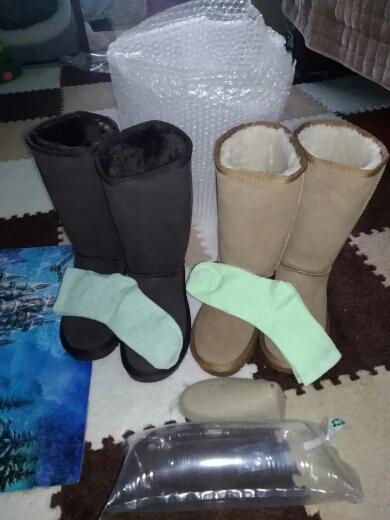 Эти ботинки действительно красивые, и описание очень точное. У них очень толстая подошва. На ярлыке внутри указана натуральная кожа и натуральная шерсть внутри. Шерсть также толстая. Цвет также очень точный. Благодарим Вас за подарок пары носков, которые можно носить внутри сапог. Доставка в Австралию Перт занимает всего 15 дней