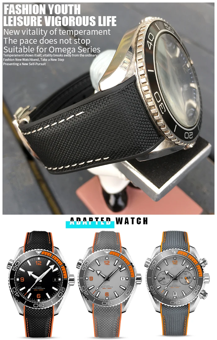 Ремешок сменный из воловьей кожи для часов, нейлоновый браслет с складной пряжкой для часов Omega, планет, океана, Seamaster, Tudor, 21 мм, 22 мм
