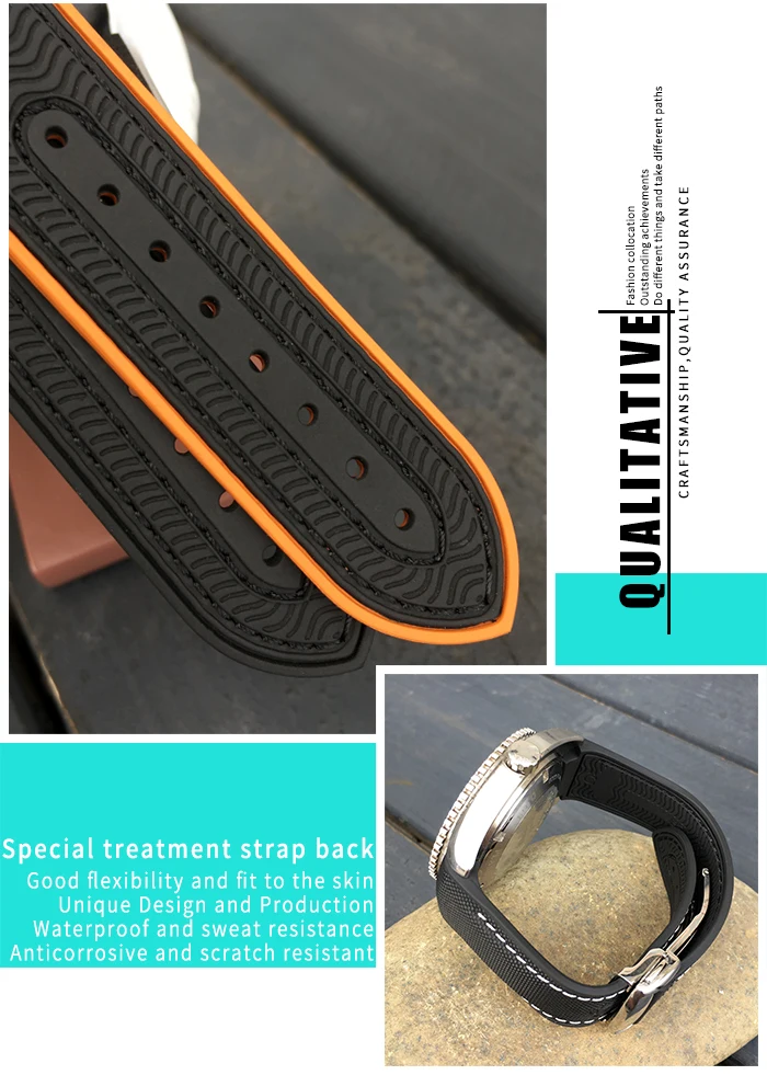 Ремешок 22 мм для часов из фторрезинового каучука высокого качества...