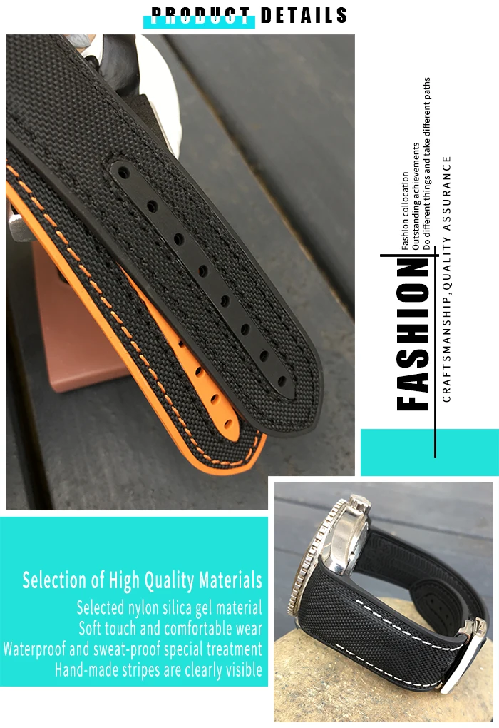 Ремешок силиконовый для часов с нейлоновой поверхностью, складная П...
