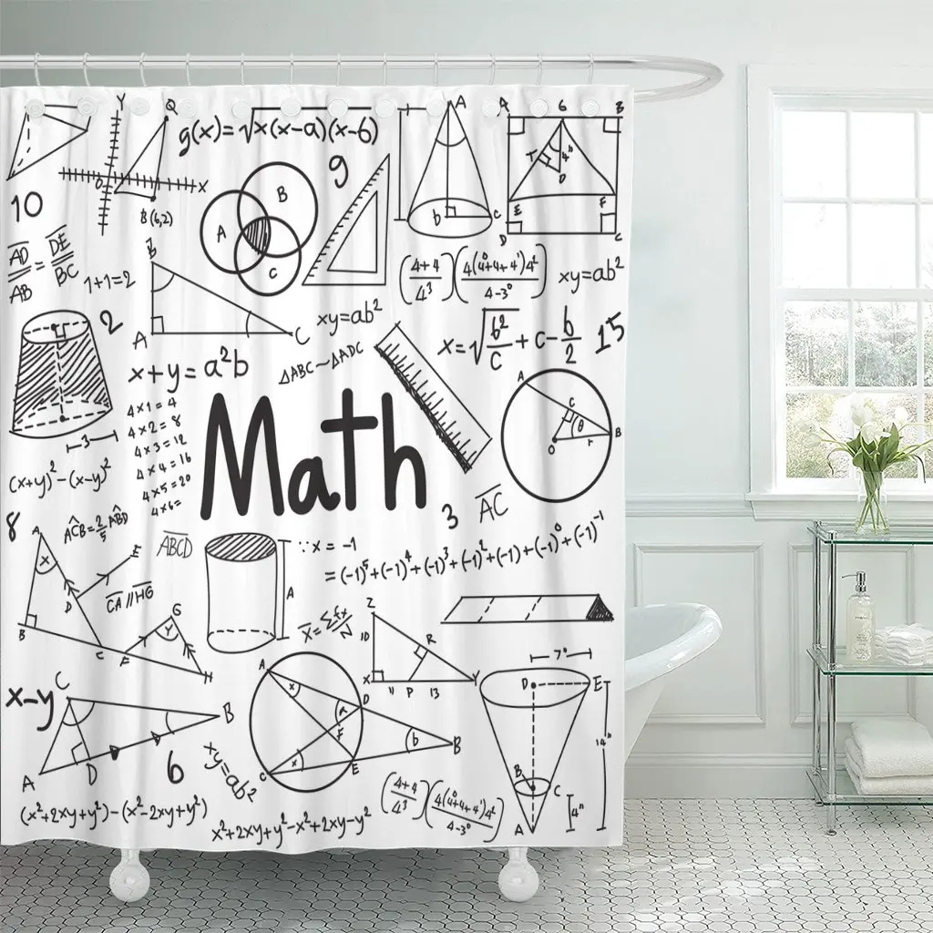 Душевая занавеска Математическая теория и математическая формула уравнение рисунок рукописное письмо в белом цвете с моделью школьное обучение водонепроницаемый