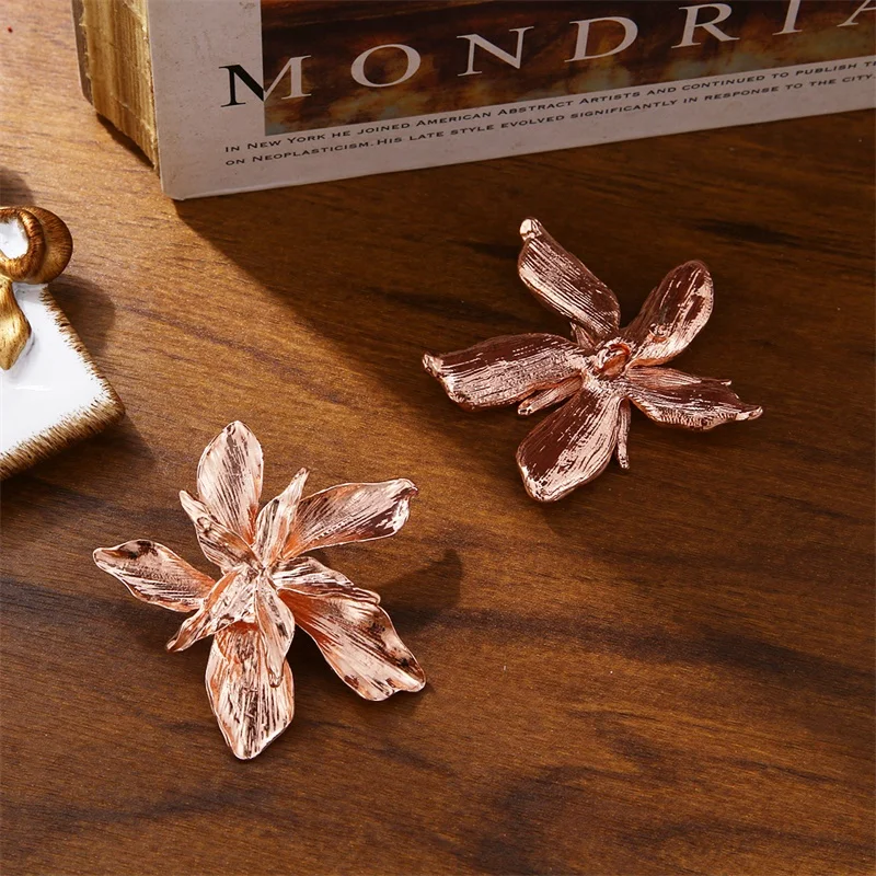 Женские серьги-подвески FNIO, золотистыесеребристые металлические серьги с крупными цветами, ювелирные украшения вечерние
