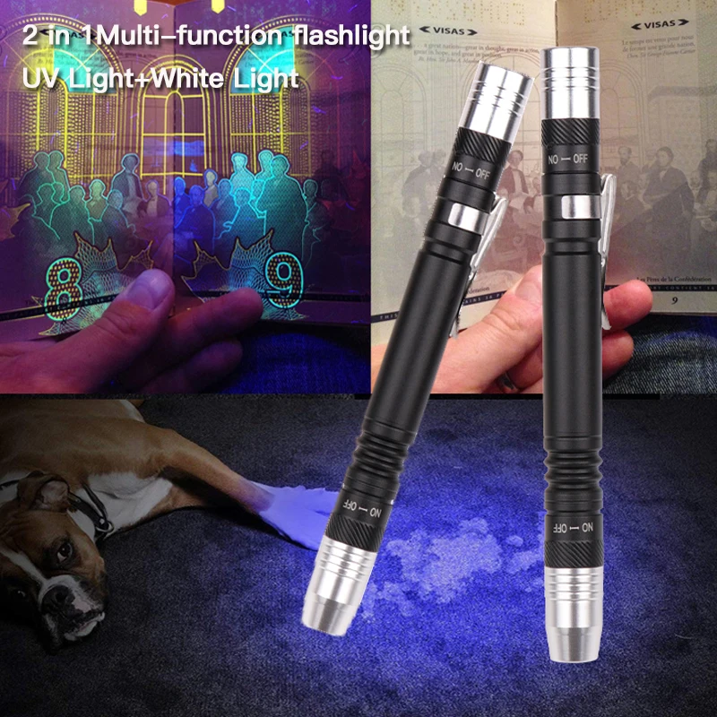 2 в 1 УФ-фонарик, светодиодный фонарик, фонарик 395 нм, Ультрафиоле...