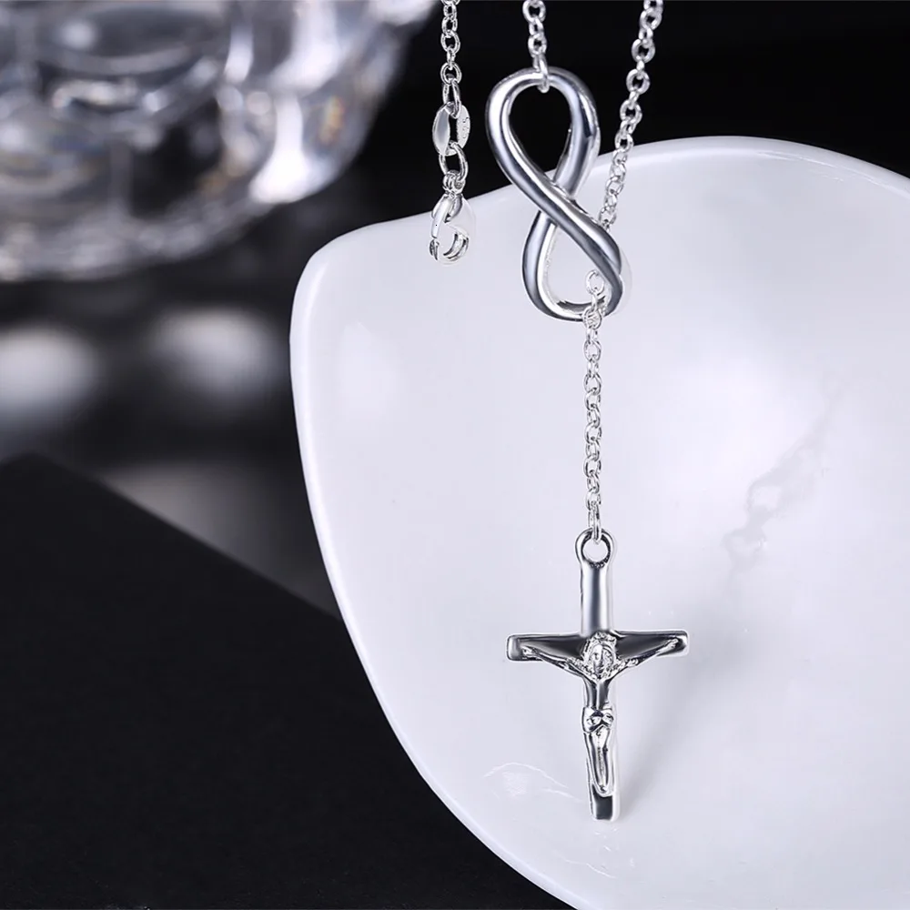 Lekani распятие INRI Иисус Христос 925 пробы серебро знак бесконечности, крестик подвеска ожерелья для Для женщин католических ювелирных украшений
