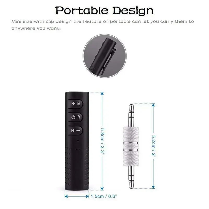 Версия V4.2 Bluetooth + EDR, поддержка Bluetooth 4,2/HFP / HSP / A2DP / AVRCP, вы можете наслаждаться музыкой и громкой связью со своего смартфона в качественном звуке. Диапазон подключения до 33 футов обеспечивает низкую задержку сигнала. Со встроенной батареи, он может обеспечить до 4 часов Время в режиме воспроизведения, только 0,5 часов зарядки.Небольшой и светильник, но функциональный, Многофункциональный и простой в транспортировке. Просто подключите динамик/наушники к нашему устройству, мгновенно преобразуйте динамик/наушник в Bluetooth беспроводной динамик/гарнитуру в моде. Bluetooth передатчик, превратить обычные стерео аудио устройств в беспроводную Потоковую передачу машина через аудиоразъем из 3,5 мм.Двойное соединение и беспроводные игры, портативный приемник Bluetooth может одновременно Подключать два bluetooth-устройства. Он совместим с большинством смартфонов и bluetooth-электроники, идеально подходит для домашней аудиосистемы или проводной транспортных средств и наушники (, во-первых, используйте 3,5 мм аудио кабель для подключения устройства с стерео/наушники затем соответствуют телефону, беспроводной музыки и громкой связи).Характеристики: 1) Простота в использовании: Просто подключите динамик/наушники к нашему устройству, он сразу же превратит ваш динамик/наушники в стильные беспроводные bluetooth-колонки/головные уборы 2) беспроводные игры: устранение проблем с проводным подключением, через беспроводное соединение и сеть передачи, Пользователь может наслаждаться высококачественной музыкой в любом месте, покрытом беспроводным управлением.3) портативный дизайн: мини-размер с зажимом. Функция телефона позволяет брать их куда угодно. 4) поддерживает iPhone, Android телефон, другие смартфоны с функцией Bluetooth A2DP.5) совместим с бытовыми стерео колонки/колонки, стереотипы, наушники, которые с 3,5 мм аудио вход.Тип: bluetooth-аудио приемникМатериал: ПластикКоличество: купальное полотенце, 1 шт• Цвет изделия: черныйВерсия Bluetooth: 4,2 + EDRДиапазон частот: 2,4 ГГцПрофиль: A2DP, AVRPC, AVDTP, HFP, HSPДиапазон передачи: до 10 м/33 футов3,5 мм ввода/вывода с открытыми пальцами; Женская обувь штепсельной вилки, мини-флеш-накопитель USB с гнездовым портИсточник питания: 5 В постоянного токаРазмеры: 62x14mmПримечания:1) Убедитесь, что входное напряжение зарядки составляет менее 5 В, а неИспользуйте быстрые зарядные устройства, чтобы рассмотреть безопасность и срок службы продукта;2) Если вы хотите отправить звук с телевизора на bluetooth-гарнитуру, Пожалуйста, подключите его к bluetooth-гарнитуре, а затем подключите устройство к аудиопорту телевизора.Посылка в комплект входит:1 х Bluetooth приемник1x3,5 мм адаптер1 кабель Micro-USBРуководство пользователя (1 шт.)Только вышеуказанная посылка, другие товары не включены.Примечание: светильник и различные дисплеи могут привести к тому, что цвет товара на картинке немного отличается от реального. Допускается погрешность в измерениях +/- 1-3 см.