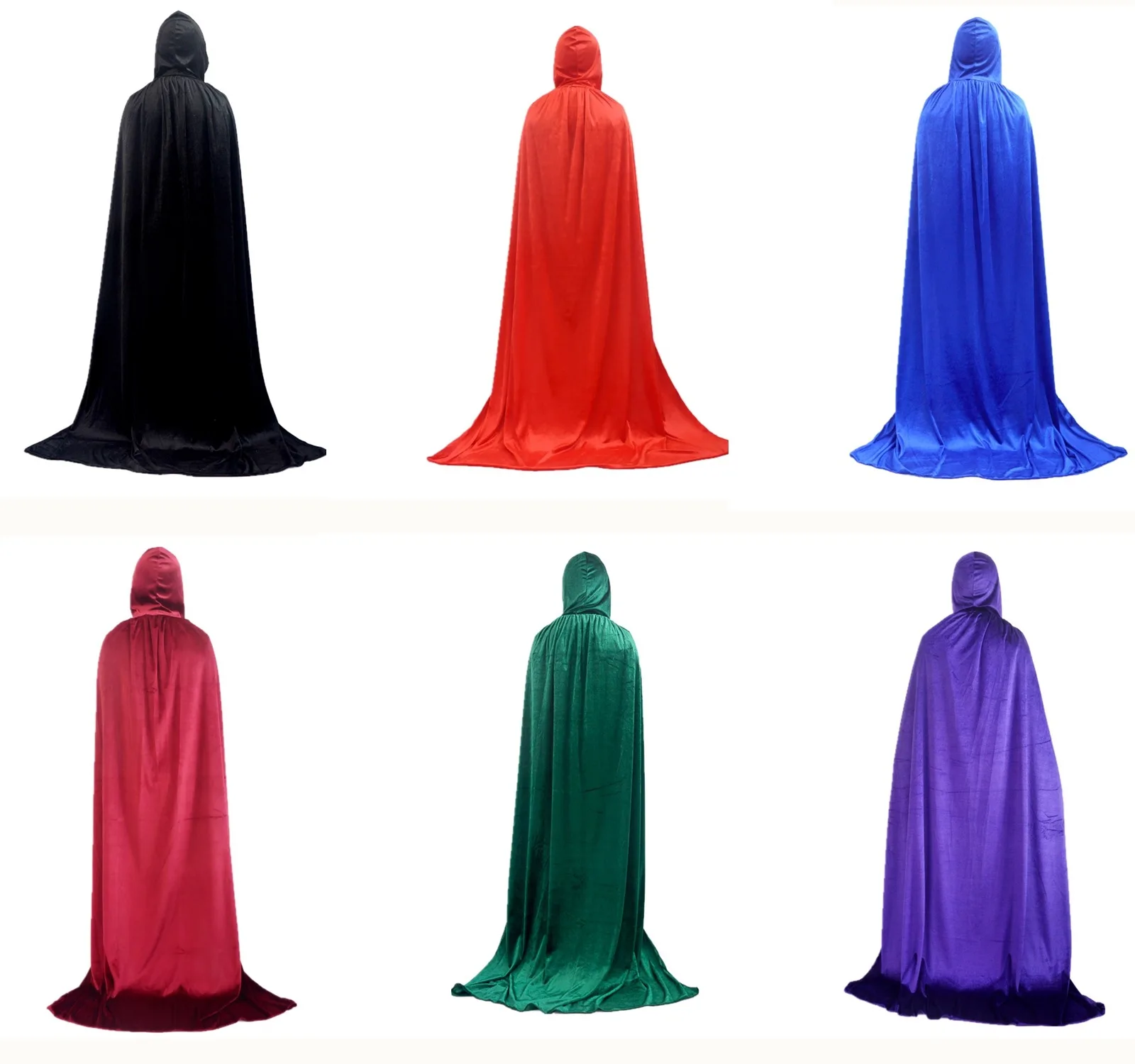 Бархатная накидка с капюшоном на Хэллоуин средневековый черный плащ...