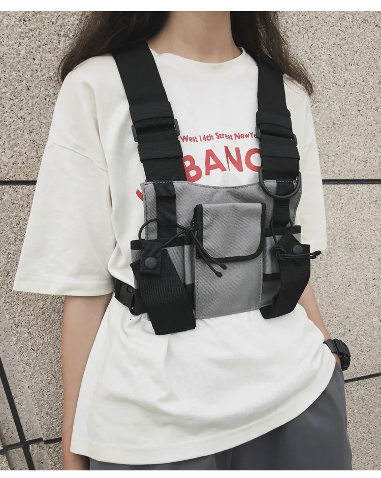 Сумка женская нагрудная, с карманами, регулируемая, в стиле хип-хоп