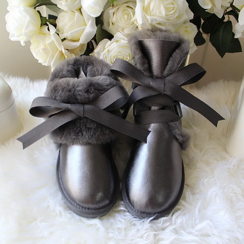 Женские Водонепроницаемые ботинки на натуральном меху, зимние ботинки из овечьей кожи и шерсти, нескользящая обувь с резиновой подошвой