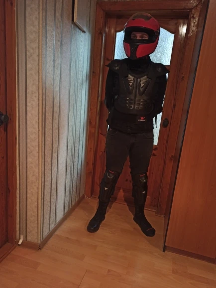 Для не особо экстремальных покатушек по лесу на не особо мощном Пит байке пойдет. До Красноярска за 13 дней и это в новогодние праздники. Продавцу спасибо за оперативность, производителю спасибо за соотношение цены и качества. На рост 187 и вес 100 кг размер L сел нормально, движения не стесняет.