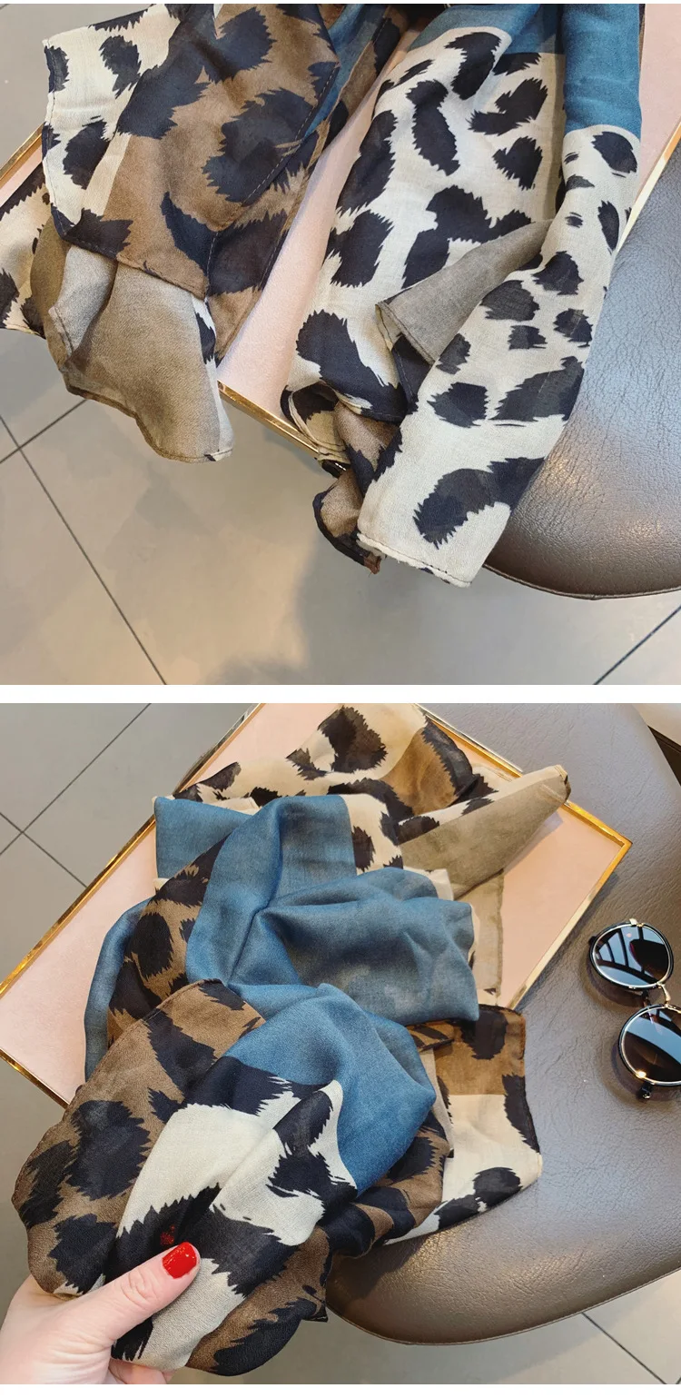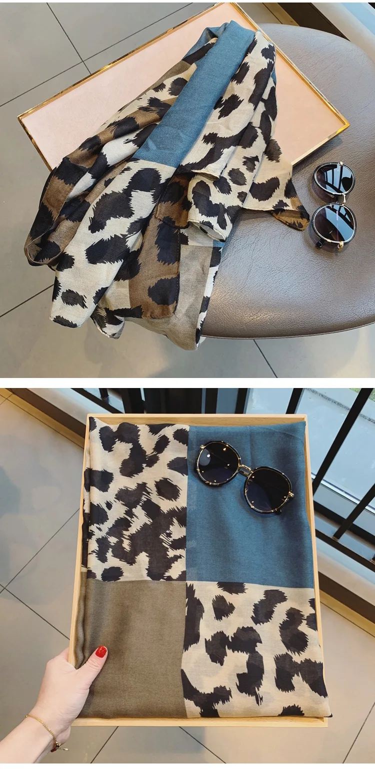 Винтажный синий Леопардовый зимний шарф для женщин осень этнический дизайн длинный Леопардовый шарф Пашмина Sjaal мусульманский хиджаб снуд