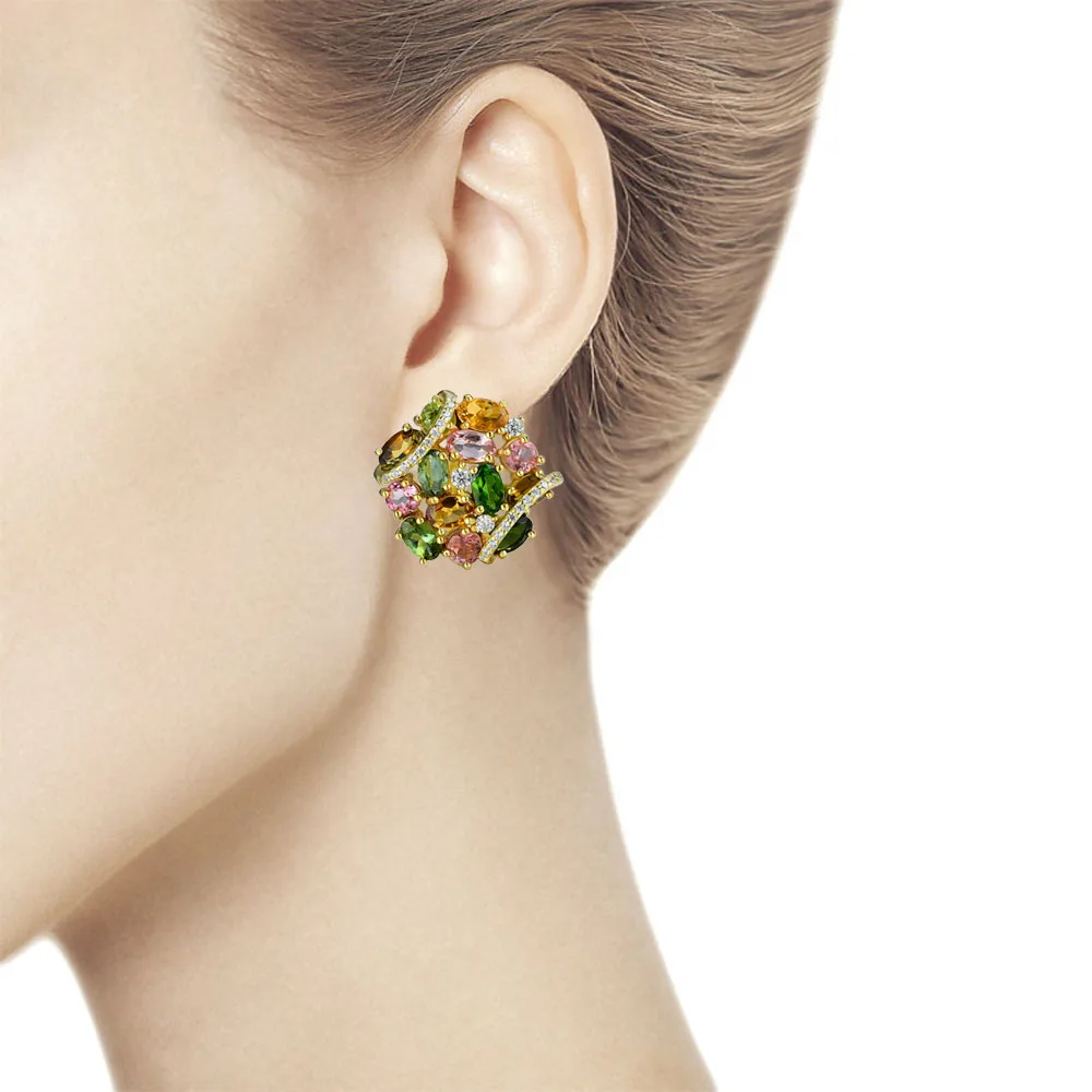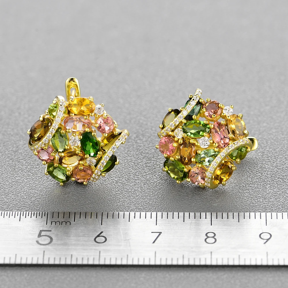 Серьги из серебра 925 пробы с натуральным турмалином желтого цвета