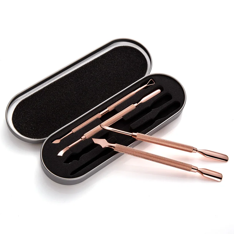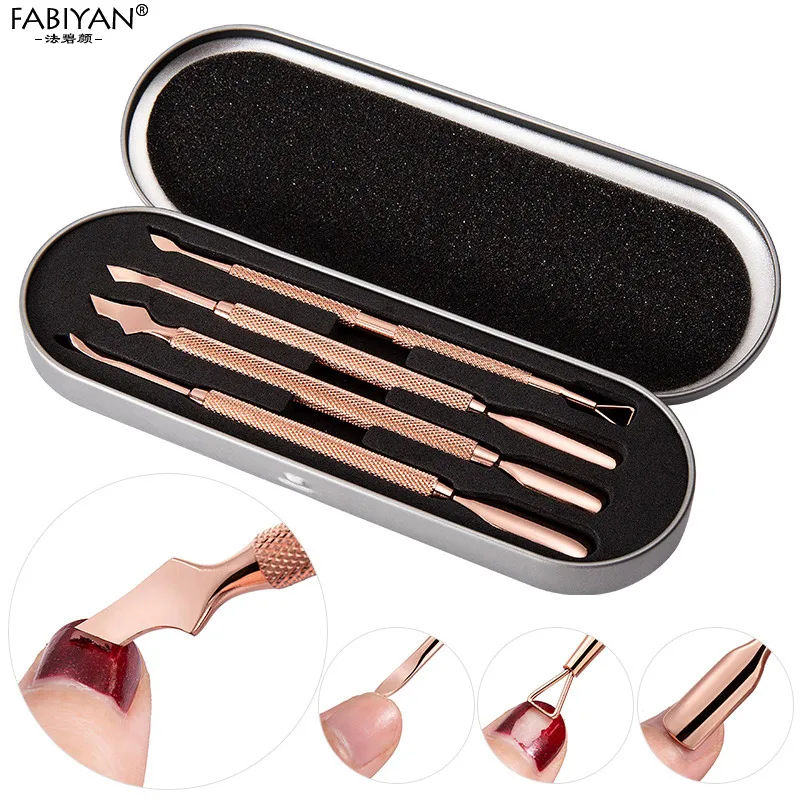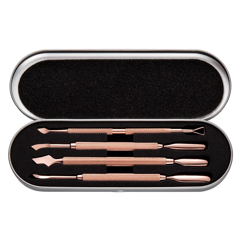 4 шт., инструменты для маникюра и педикюра из нержавеющей стали с коробкой, розовое золото, для удаления омертвевшей кожи
