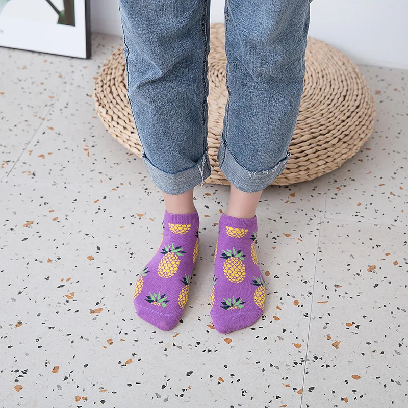 Носки женские Короткие хлопковые с авокадо, яблоком, ананасом, вишней