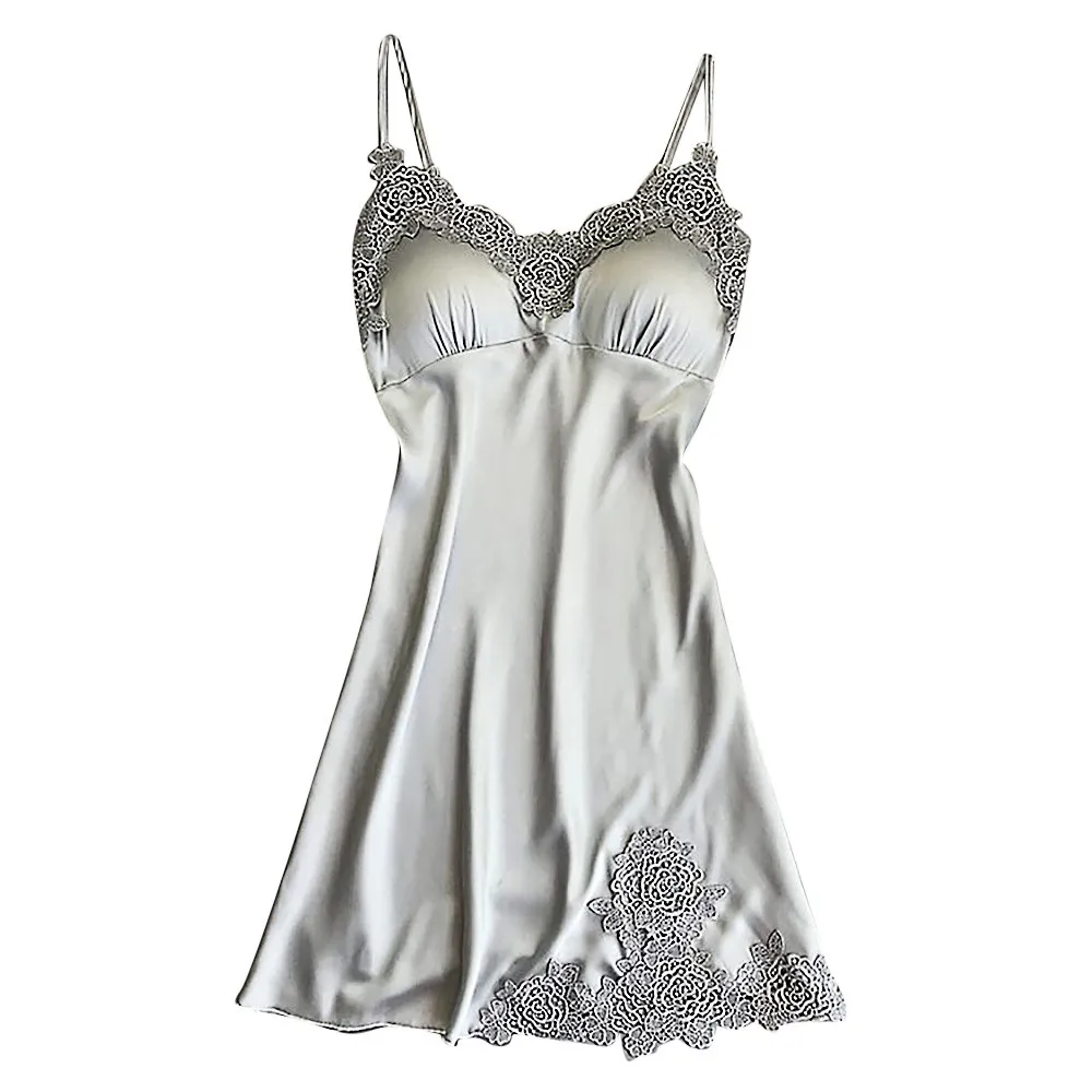 Женская пижама, сексуальное нижнее белье, Шелковый Атласный халат и рубашка, Женская кружевная ночная сорочка с V-образным вырезом, пикантный домашний костюм, халат, горячая новинка