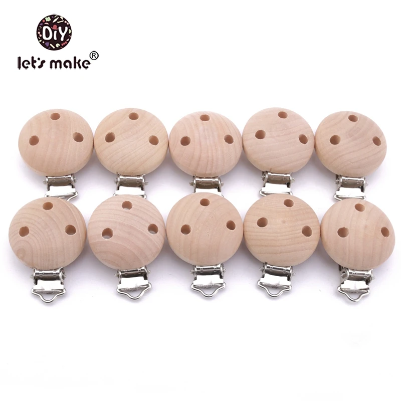 Зажим для соски Let's Make, круглые деревянные гравированные бусины...