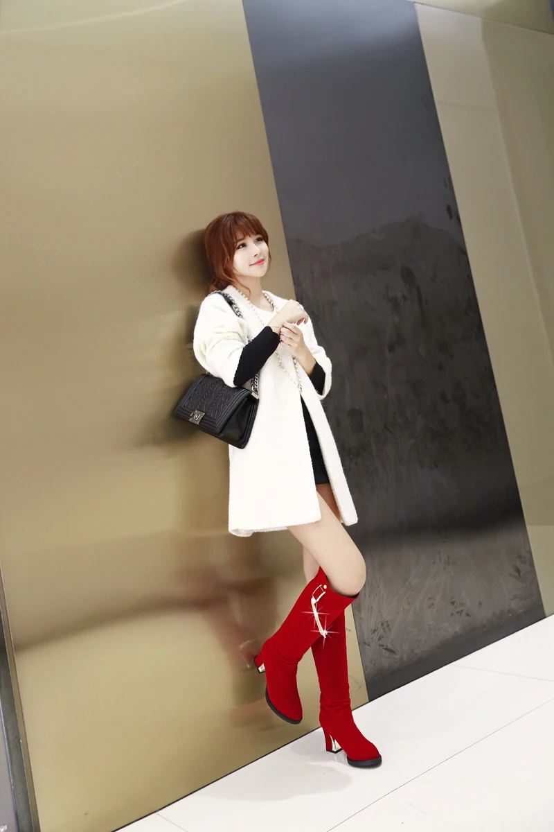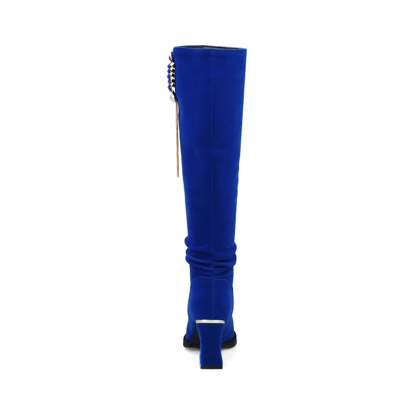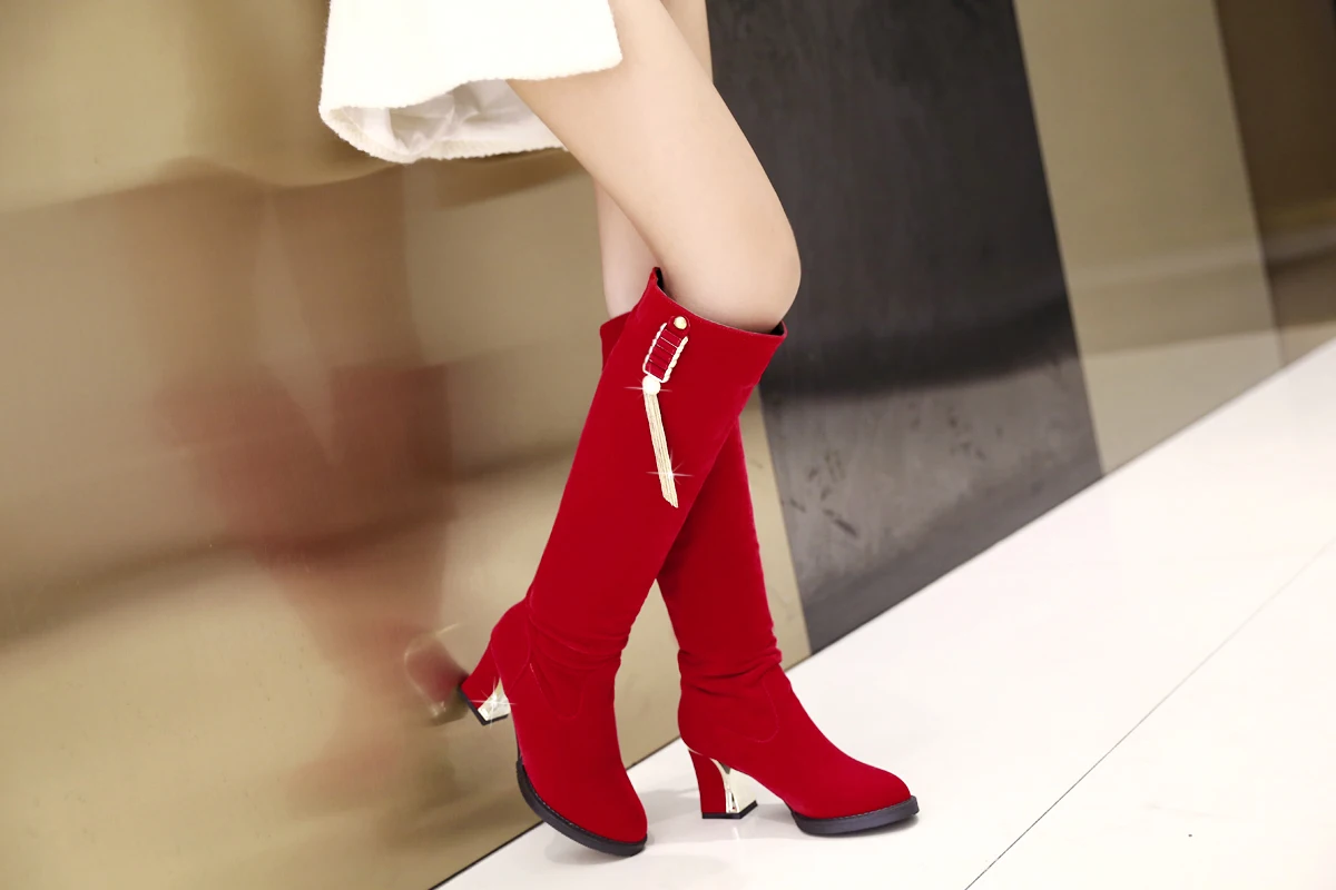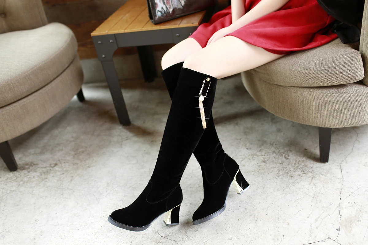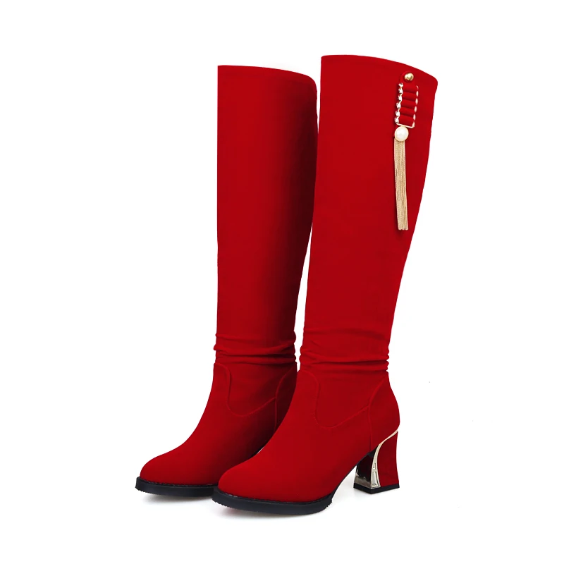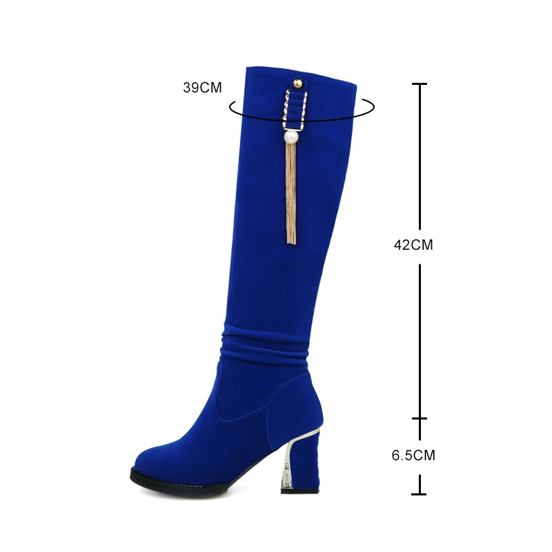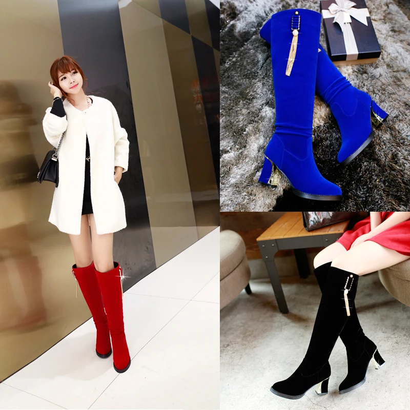 Сапоги женские до колена, с кисточками, на высоком каблуке, черные, синие, красные, большой размер 34-44, для зимы