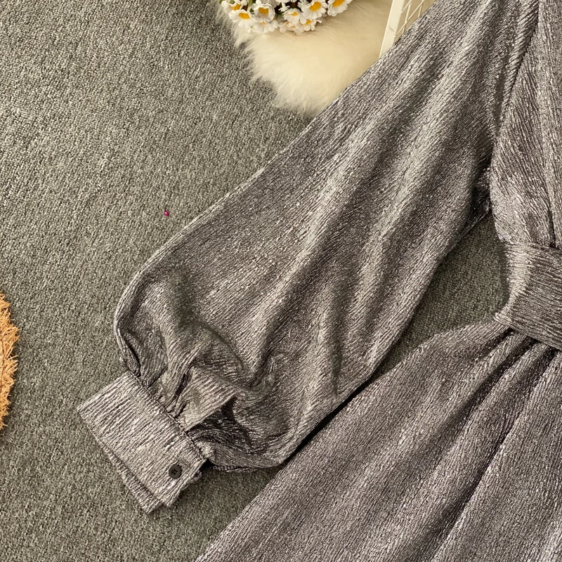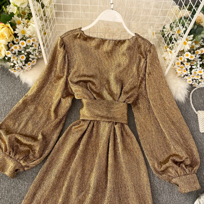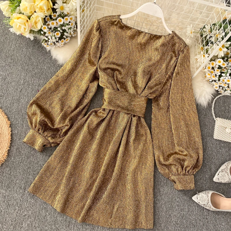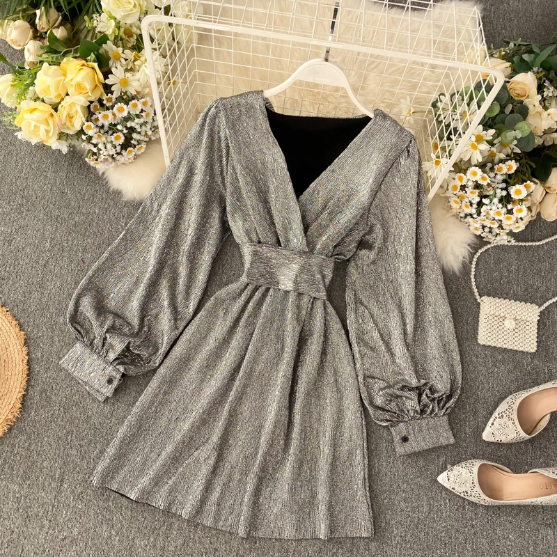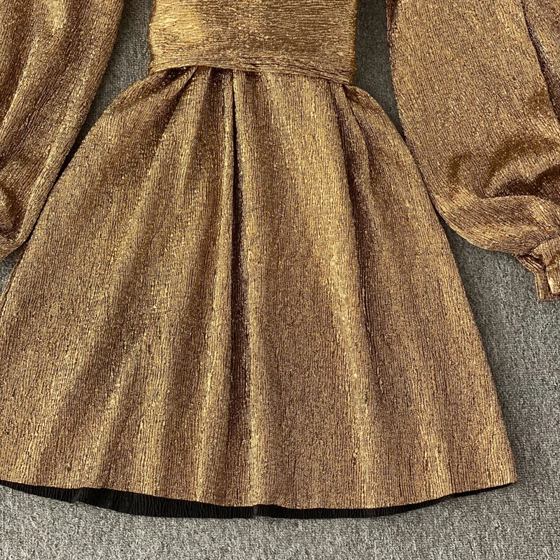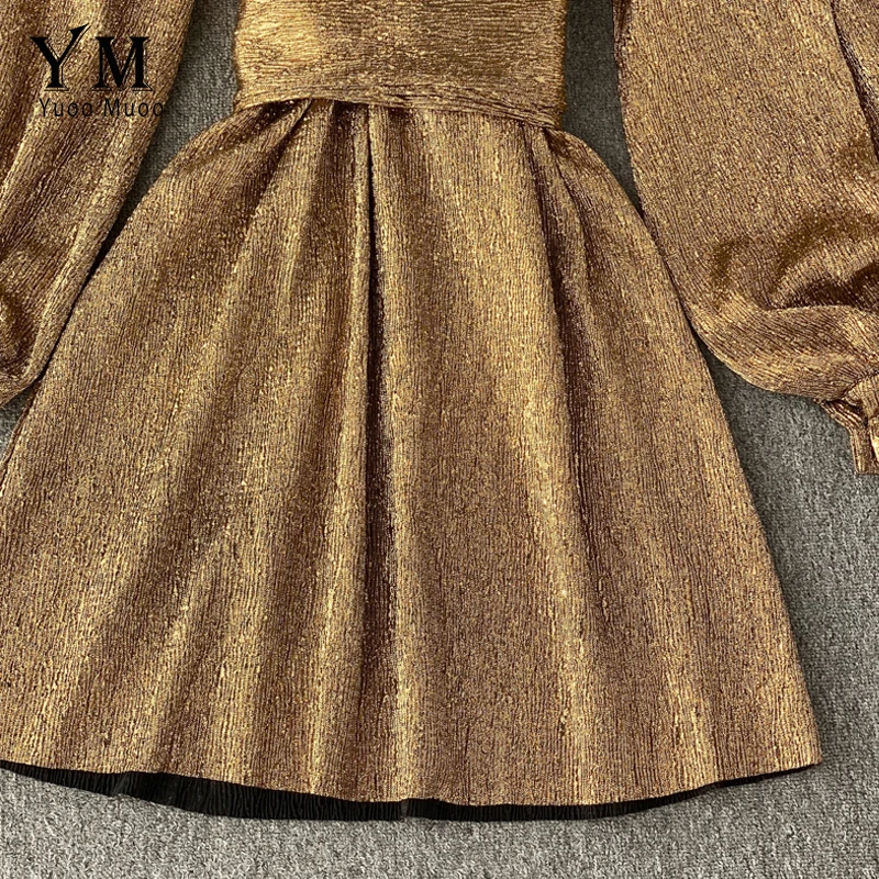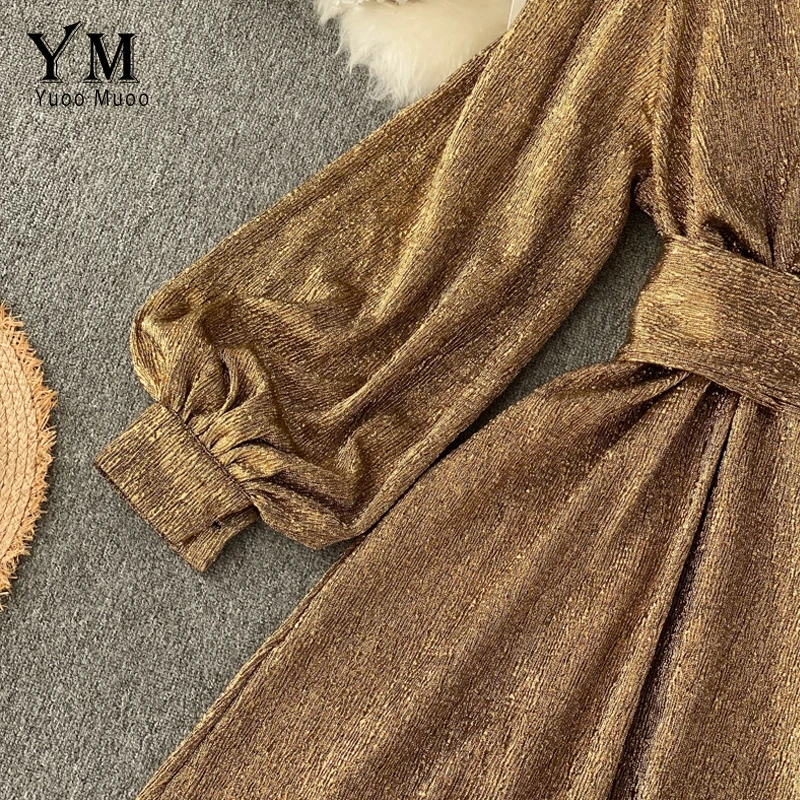 Женское Короткое платье YuooMuoo, золотистое блестящее Бандажное платье с рукавами-фонариками и v-образным вырезом, вечерние платья, 2019