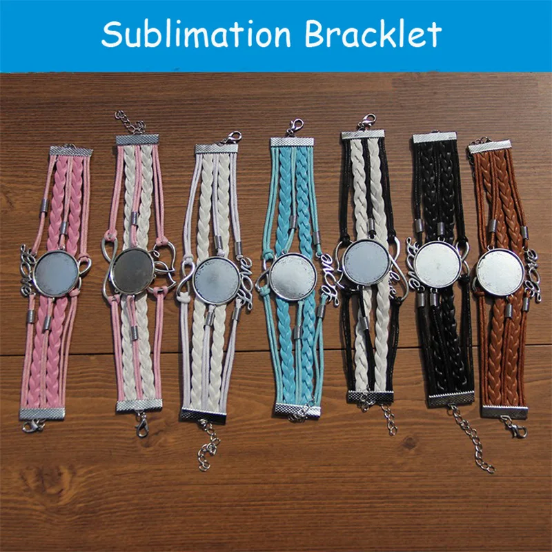 Браслеты Женские плетеные кожаные, с сублимационной печатью, 10 шт., пустые браслеты