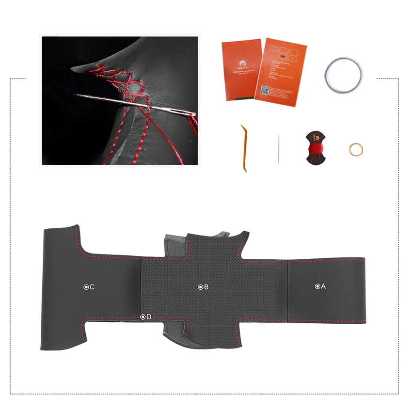 A + C: черная искусственная кожа B: черная перфорированная искусственная кожа D: Красная Нить