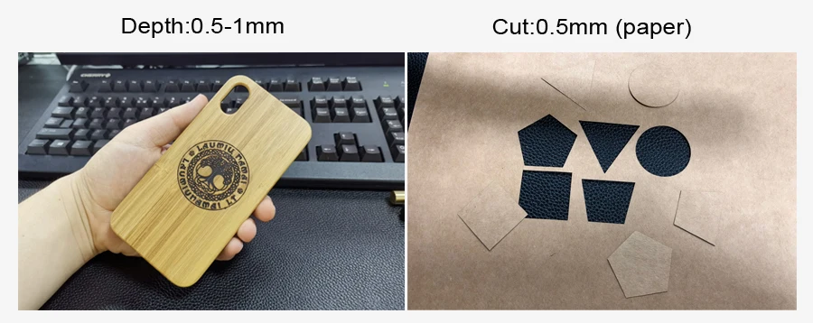 * Деревянные чипы, бамбуковые чипы, пластмассы, кожа и т. д. все могут быть выгравированы. Металл (требуется более 7 Вт мощности), стекло, кристалл не может быть вырезан. Керамика должна быть вырезана из цветной бумаги. Как правило, огонь может быть сожжен, некоторые могут быть вырезаны, некоторые прозрачные или белые могут быть окрашены в черный цвет, а металлические краски также могут быть вырезаны.