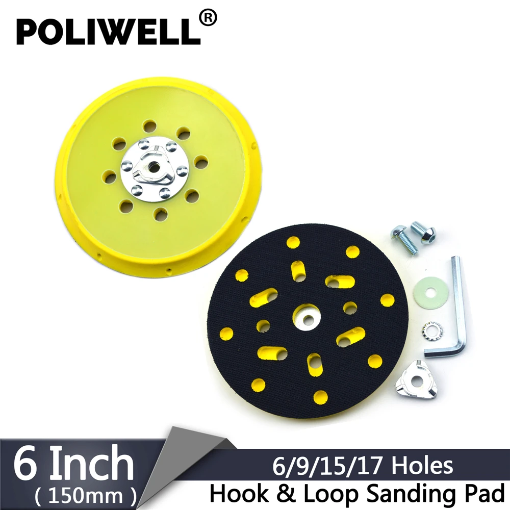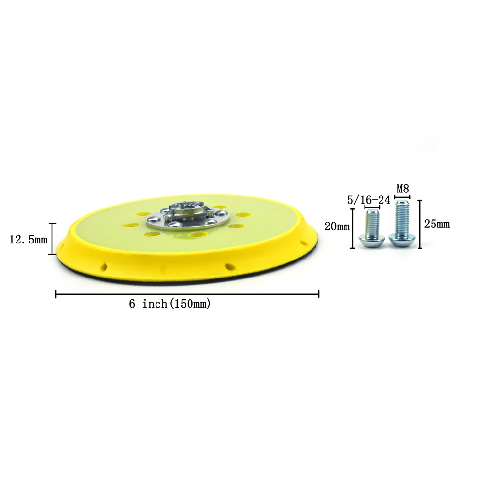 Полиуретановая шлифовальная накладка на липучке, 6 дюймов, 150 мм, подходит для 691517 отверстий, Пылезащитная накладка M8 и 516-24 дюйма для подложки резьбы для шлифовального станка