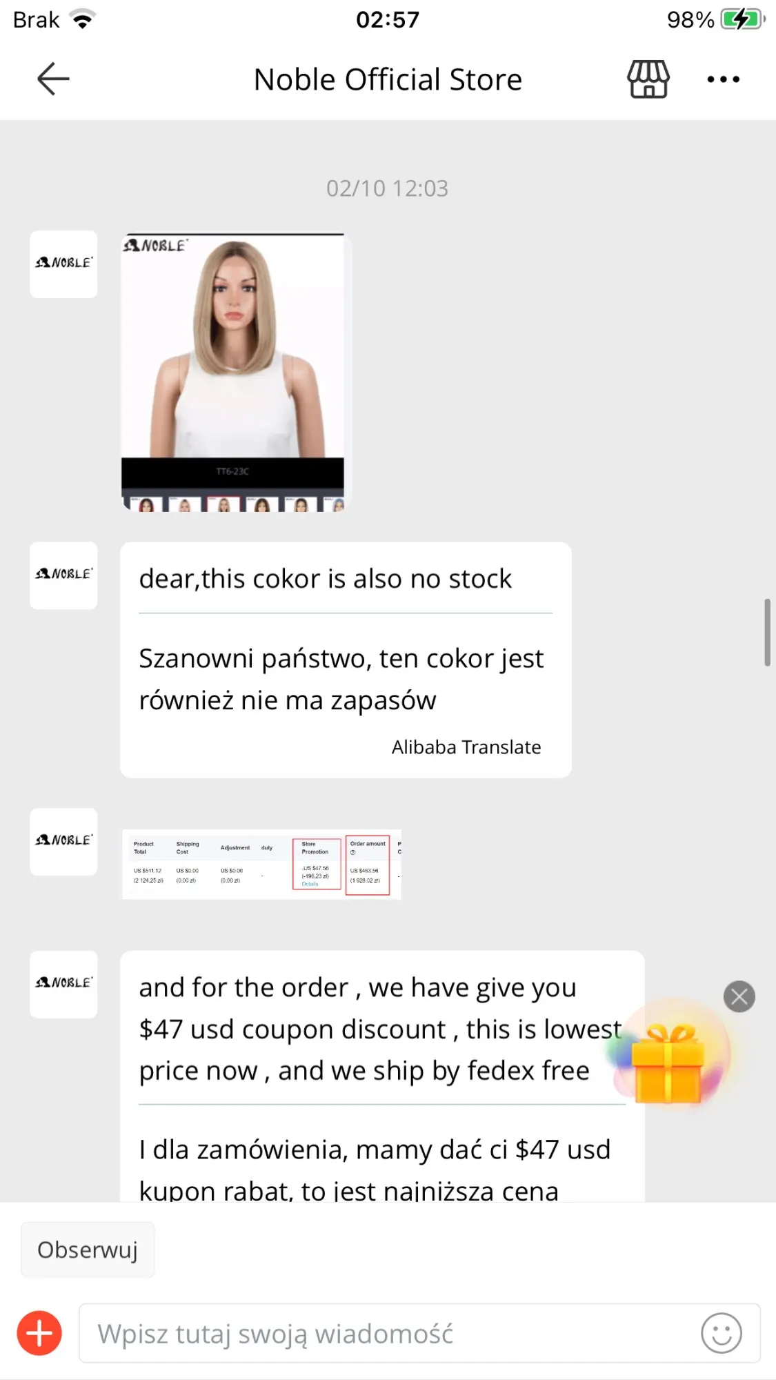 Продавец не получил эти парики, но отображает их, которые их получили. Конечно, он не отправил их, и после получения пакета вы должны попросить AliExpress и продавца вернуть деньги, что напрасно тратят ваше время. На 7 заказанных париков у него было только 4. Одна модель он заменил другой, но 2 отдыха он просто не отправил. Теперь я трачу свое время и прошу их вернуть деньги. Это просто обман, имейте в виду перед покупкой здесь!