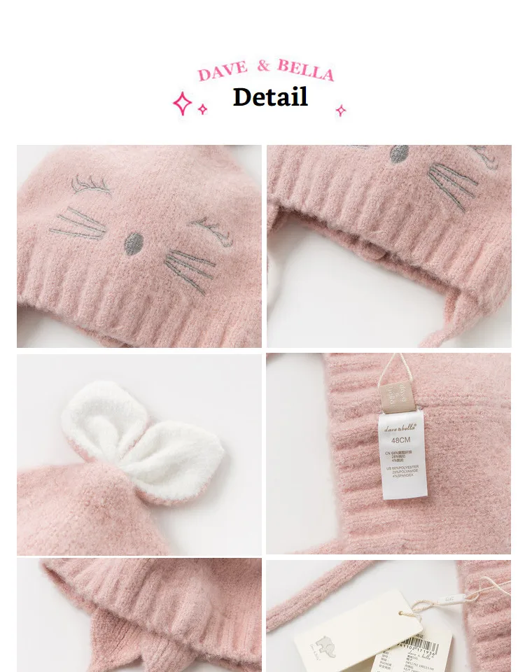 Осенне-зимняя жаккардовая шапка для маленьких девочек из хлопка и шерсти DB11792