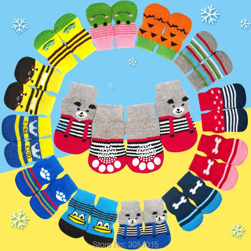 50 лотов Лидер продаж для домашних животных из мультика собака 4 шт.компл. триммер для стрижки небольших собак обувь для собак, красивые, мягкие, теплые вязаные носки нескользящие нескользящая Нижняя