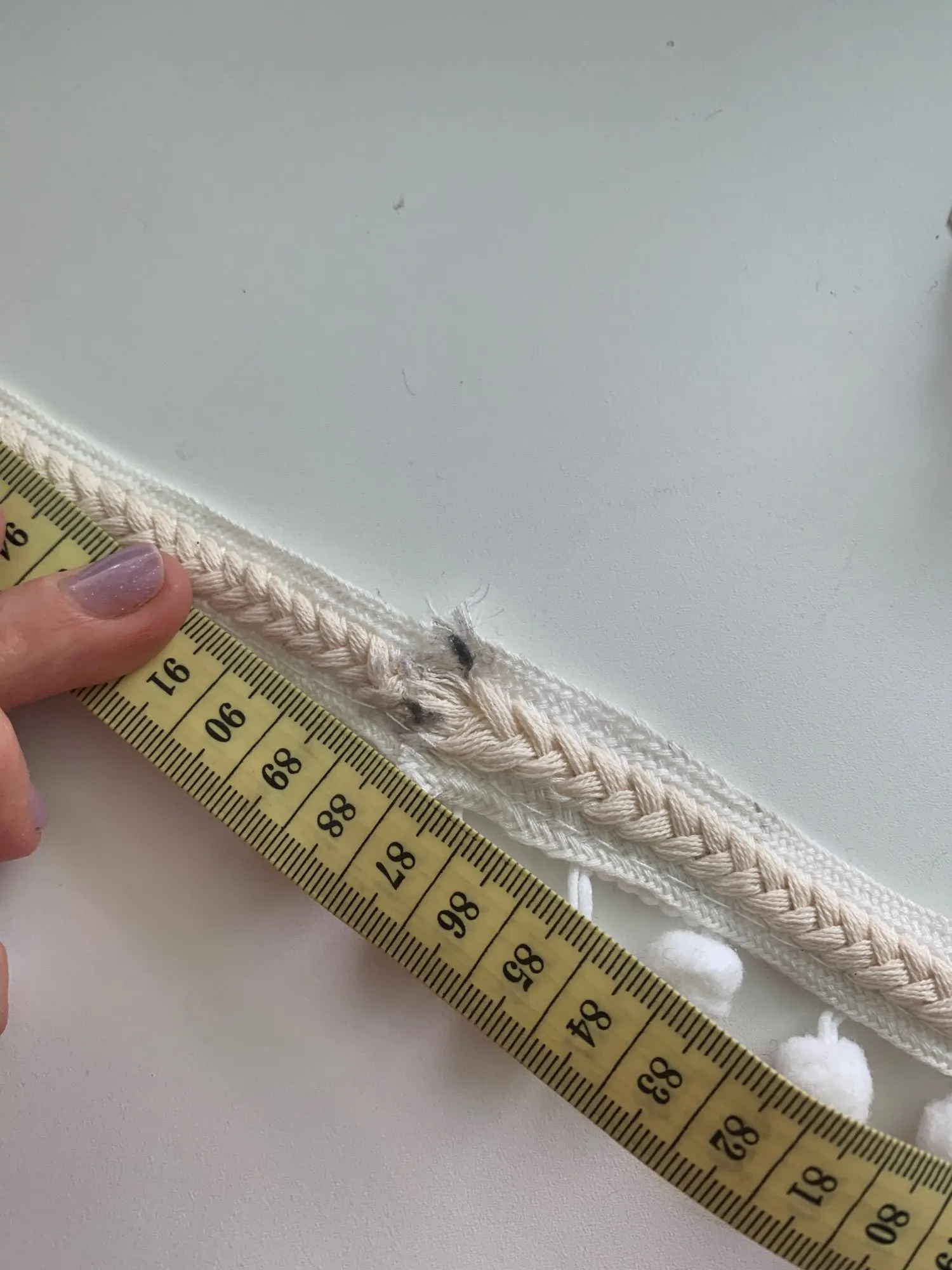 Заказывала 4 вида тесьмы по 1 ярду, точно для своей задачи. Один ярд это 91,44 см. Получила по 86 - 87- см. Некрасиво!!