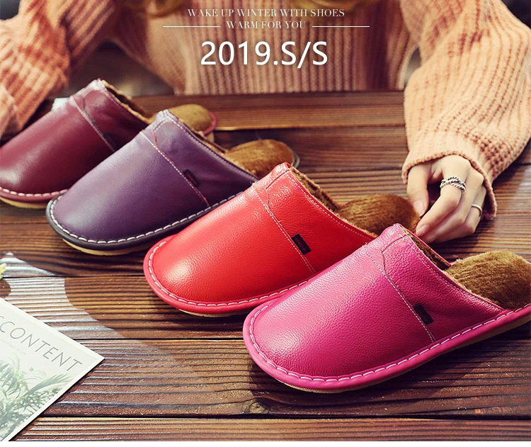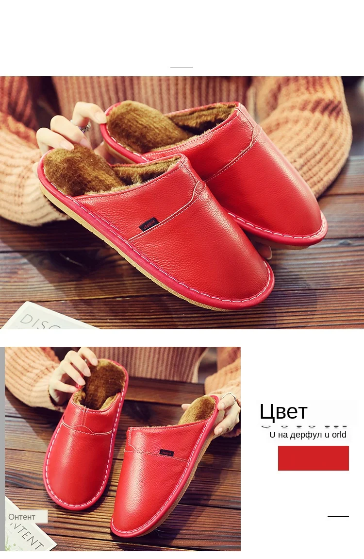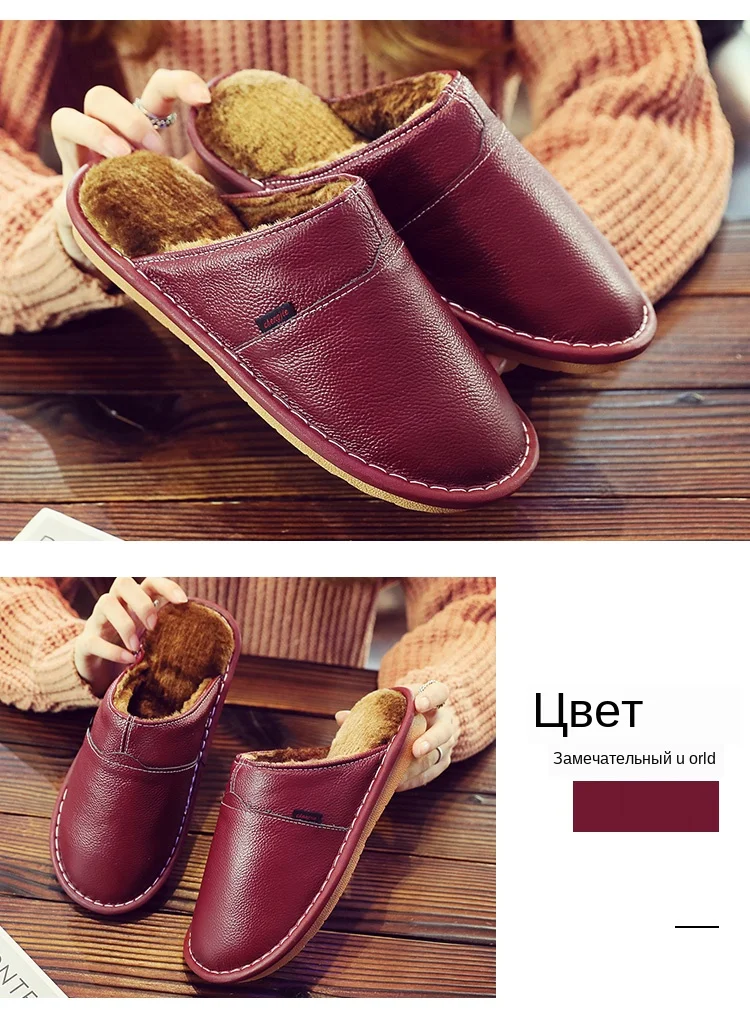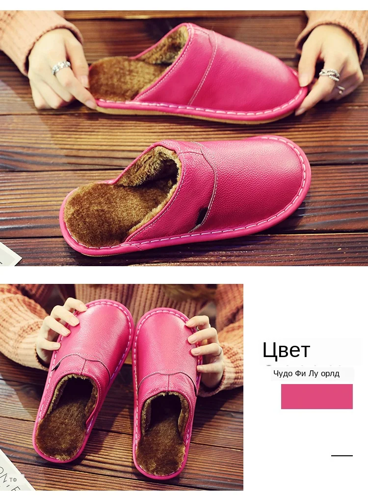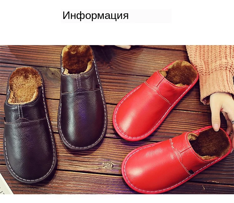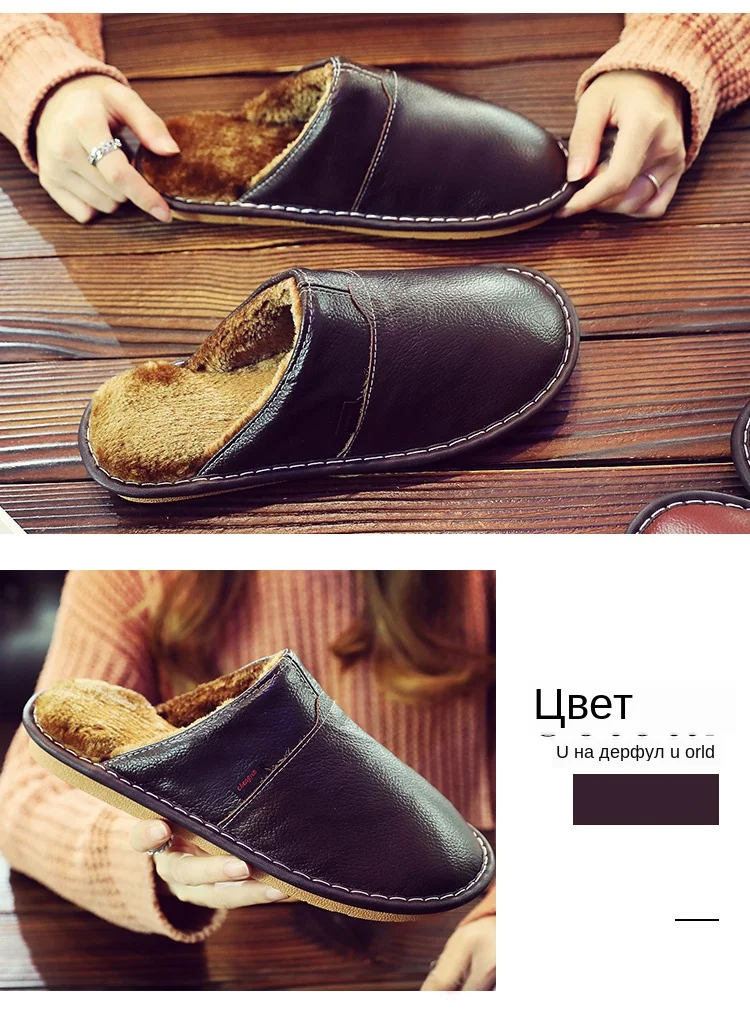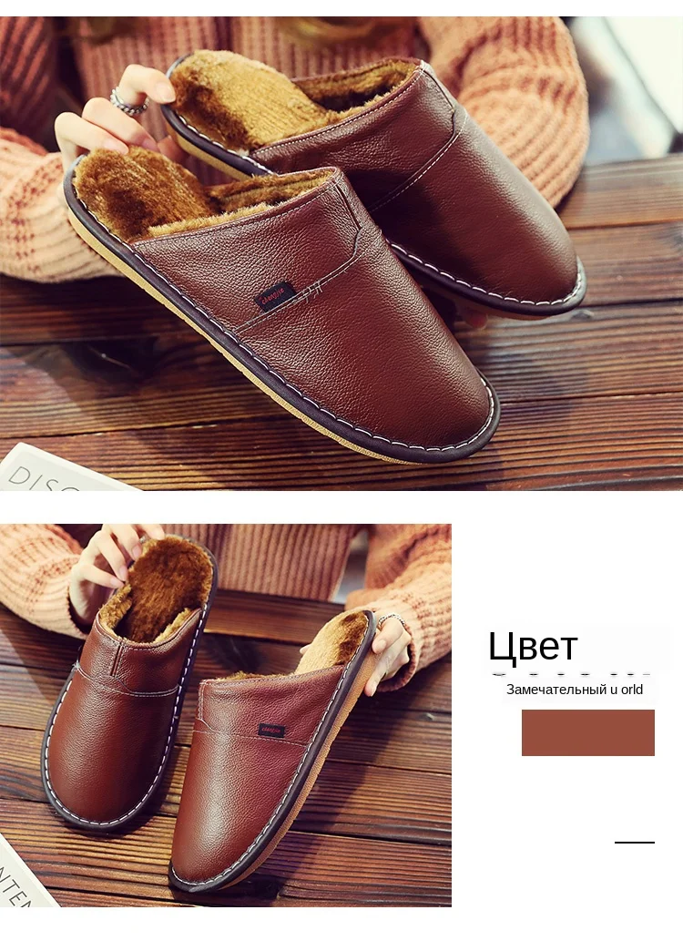 Домашние тапочки для мужчин; Плюшевые теплые тапочки на зиму; Мужские Прошитые туфли на платформе из натуральной кожи; Модные домашние тапочки унисекс
