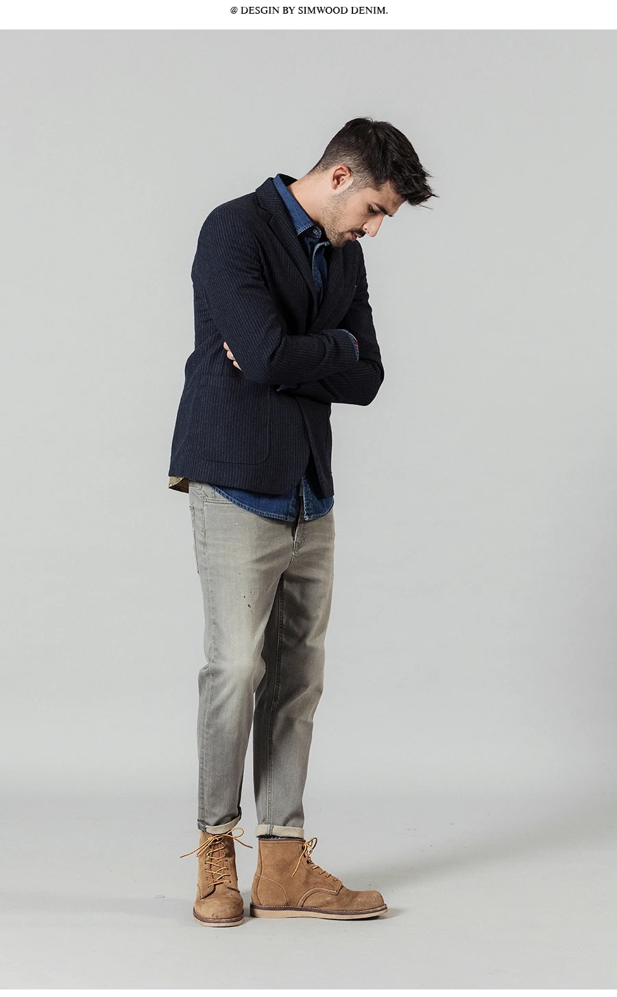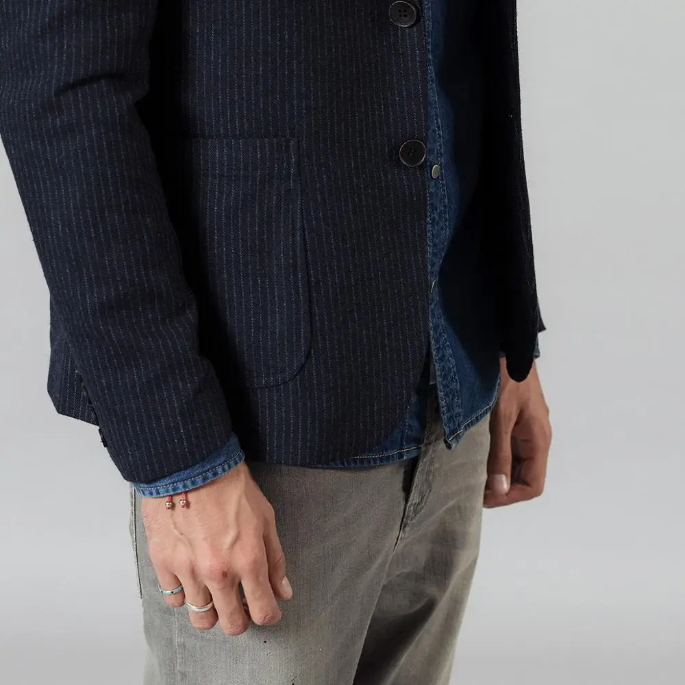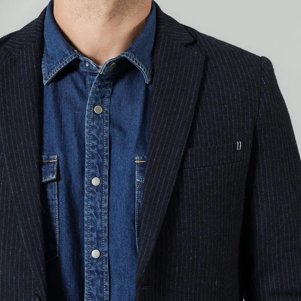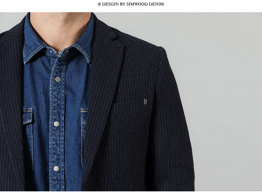 SIMWOOD 2019 осень зима вертикальный полосатый блейзер Мужской смесь шерсти повседневные куртки высокого качества размера плюс брендовая одежда c