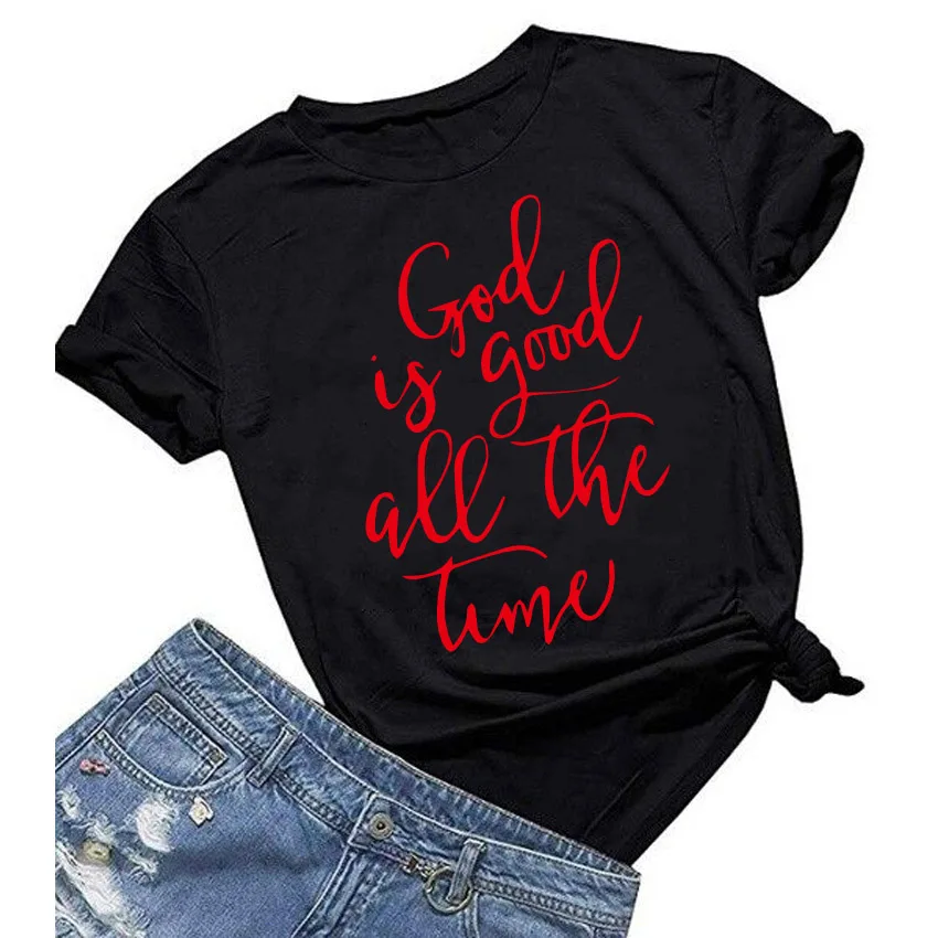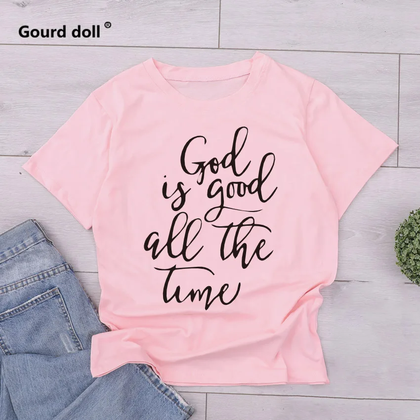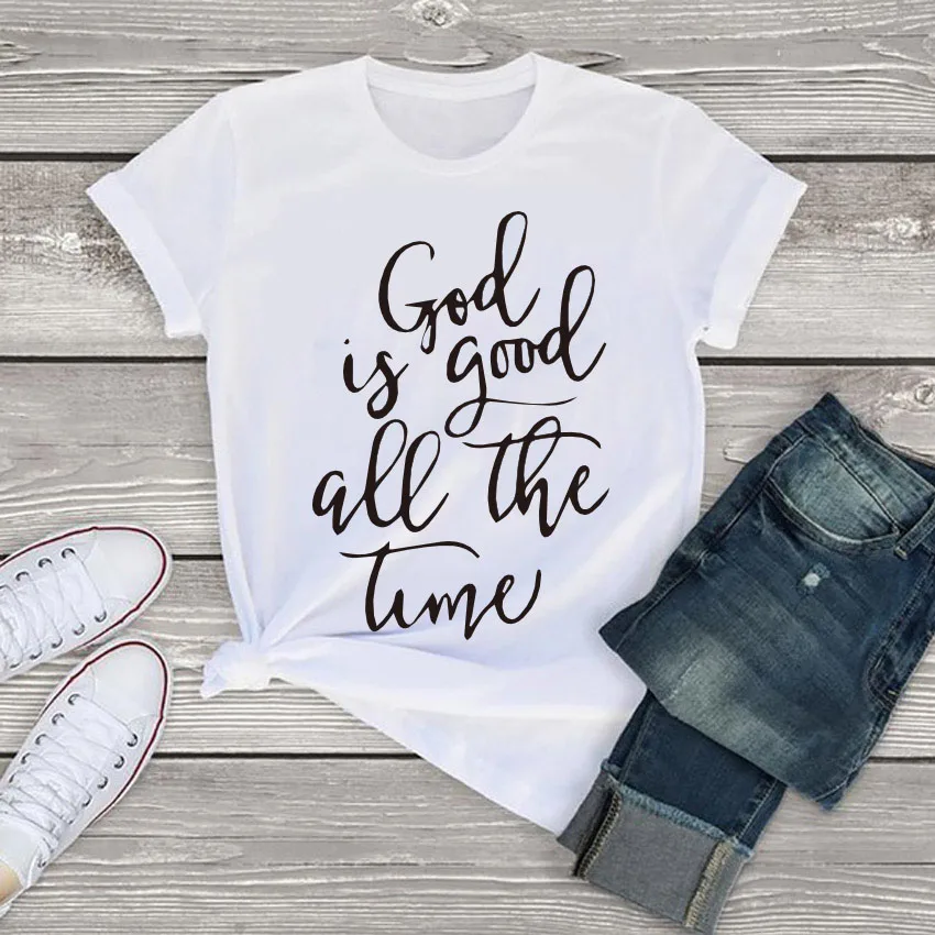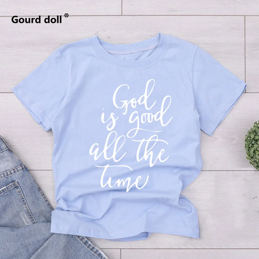 Футболка женская с надписью God is Good, Повседневная рубашка с принтом, Топ в стиле Харадзюку, на лето