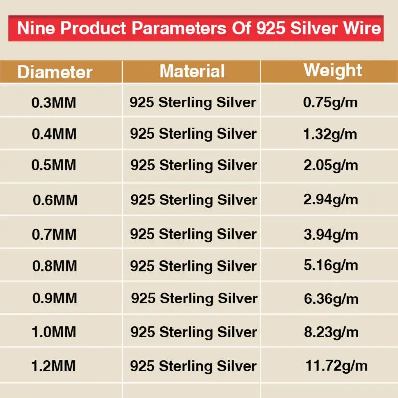 1 м 925 пробы Серебряная проволоки в "сделай сам" для изготовления ювелирных изделий, 0,30,40,50,60,70,80,91,2 мм