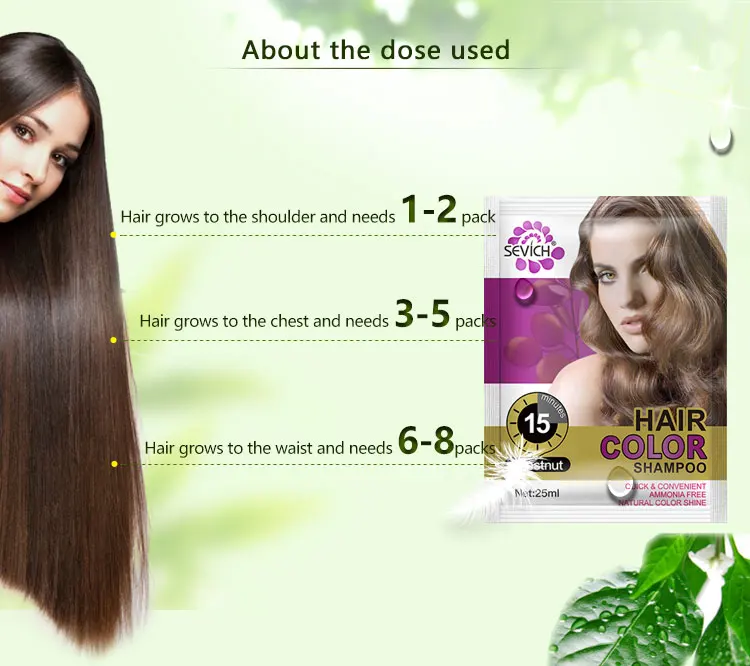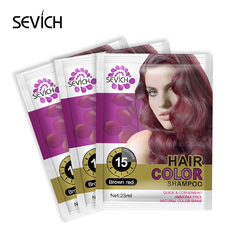 Окрашивающий шампунь для волос-это такой вид шампуня, который окрашивает волосы за 15-25 минут и специально предназначен для того, чтобы придать блеск вашим волосам во время обычного процесса мытья волос в ванной комнате.Окрашивающий шампунь для волос Sevich не токсичен и высокотехнологичен. Также он питает, защищает и восстанавливает кожу головы. По сравнению с обычной краской этот шампунь обладает преимуществом низкой цены и экономии времени.1 УдобноПрост в обращении. Перед тем как открыть упаковку, наденьте пластиковые перчатки. Втирайте несколько минут, как обычный шампунь.2. Экономия времениОдин раз использования придаст блеск окрашенных волос через 1:-25 минут.3. Экономия средствПо сравнению с высокими ценами окрашивания в салоне черный шампунь для волос более чем в 10 раз дешевле.4. Бесплатные пластиковые перчаткиОкрашивают волосы за 15-25 минут.Легко красить, легко смывать.Стойкая, быстродействующая краска для волосМода! Легко! Удобно! Станьте другой собой!Осторожно:1. Избегайте контакта с глазами.2. Только для наружного использования.3. Храните в недоступном для детей месте.Этот продукт представлен в черном, золотистом, каштановом, коричнево-рыжем и кофейном оттенках. Если после первой попытки эффект окрашивания не достигнут, попробуйте еще раз и подождите 15-25 минут не смывая.